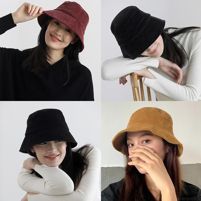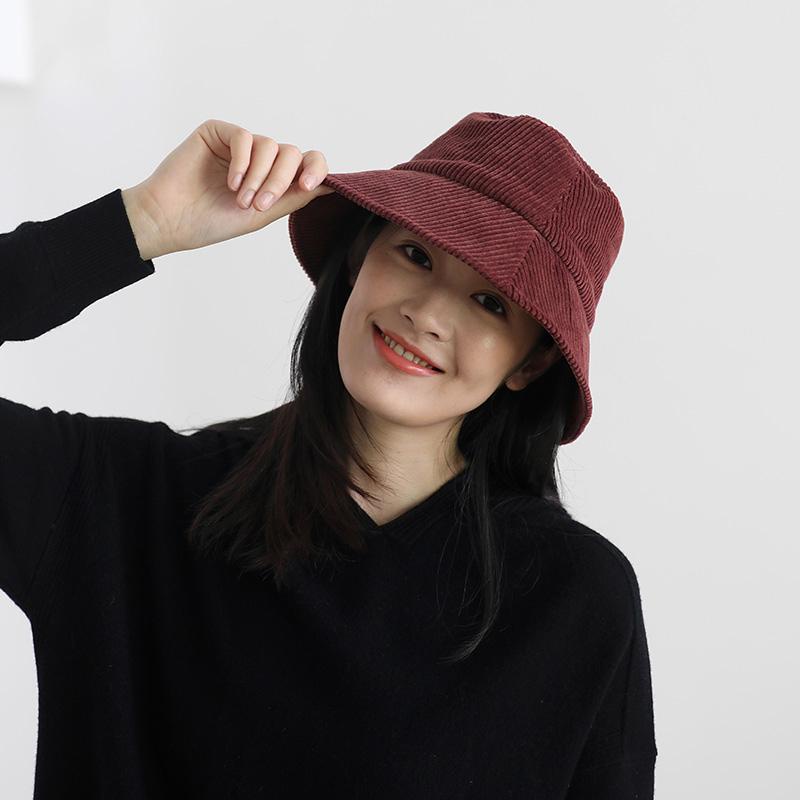 หมวกบักเก็ต ผ้าลูกฟูก ขนาดเล็ก สามารถปรับได้ เข้ากับทุกการแต่งกาย แฟชั่นฤดูใบไม้ร่วง และฤดูหนาว สไตล์ตะวันตก สําหรับผู้หญิง