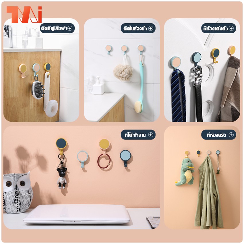 TMi ตะขอ ตะขอจิ๋วติดผนัง แขวนของในห้องน้ำ ห้องนั่งเล่น ในห้องครัว สำนักงาน
