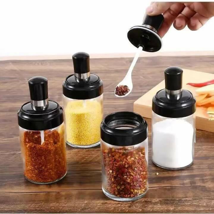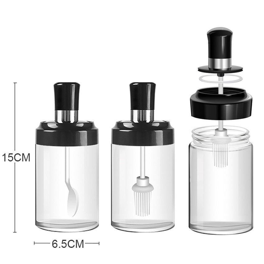 TMI ขวดใส่เครื่องปรุง กระปุกใส่เครื่องเทศ พร้อมช้อนตักในตัวสีดำ