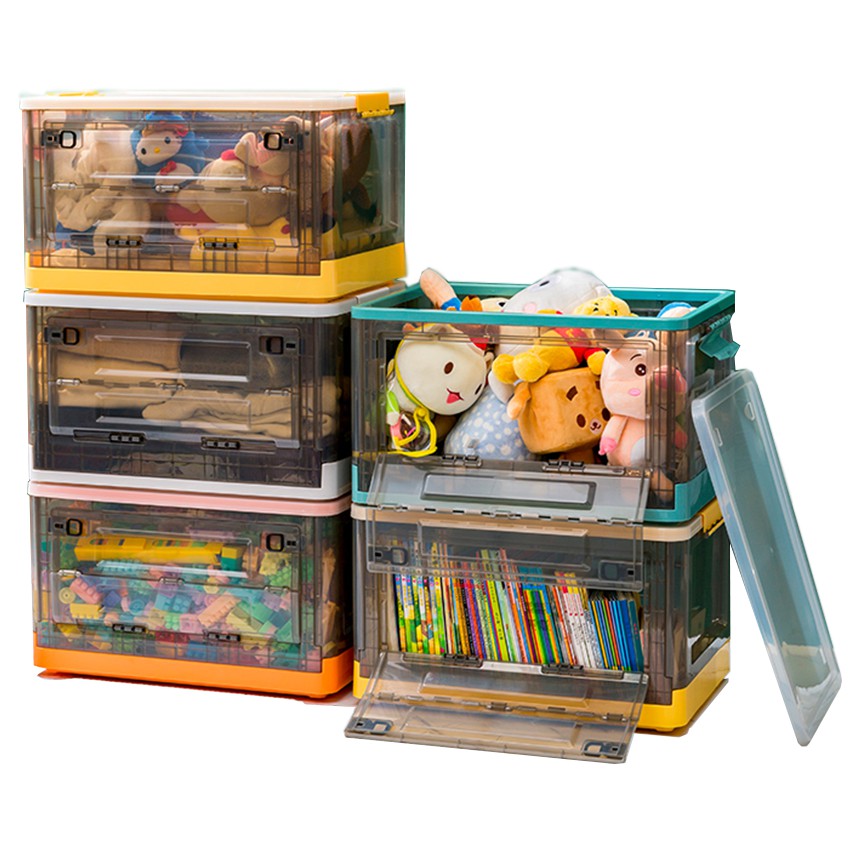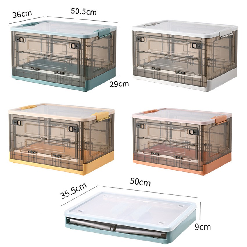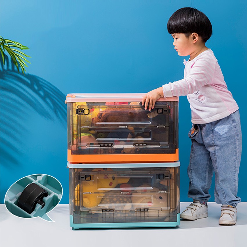 กล่องเก็บของพับเก็บได้ พร้อมฝาปิด ลังพลาสติกพับเก็บได้ กล่องเก็บของอเนกประสงค์ กล่องพลาสติกพับได้มีล้อลาก