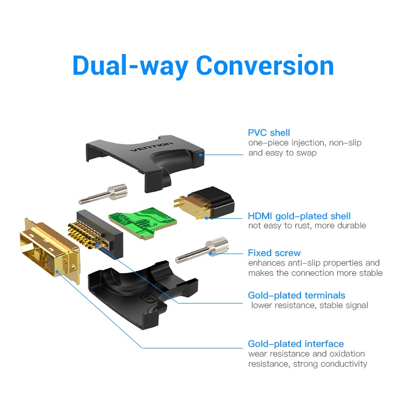 Vention ส่งเร็วจากประเทศไทย อะแดปเตอร์ Bi-wayVention Dvi To Hdmi Dvi - D 24 + 1 Male To Hdmi Female Cable Connector for Hdtv Projector PC