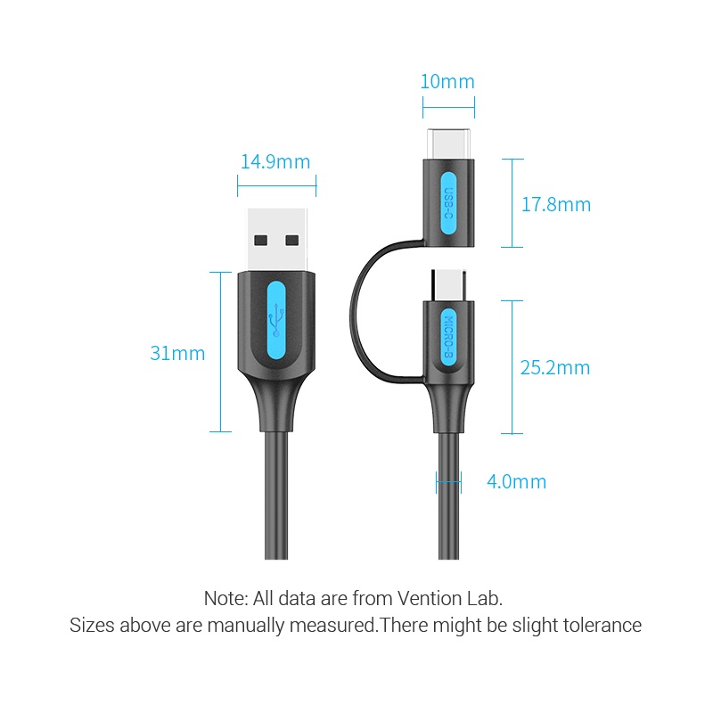 Vention สายชาร์จ Usb 2 In 1 0 3 A Usb C / Micro B ความเร็วสูง 480 Mbps สําหรับโทรศัพท์มือถือ