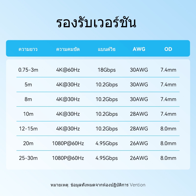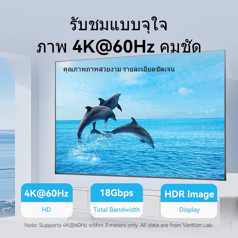 Vention สาย HDMI 2.0 4K@60Hz HDR 3D Vision Audio Sync ไร้อาการหน่วง สำหรับทีวี/โปรเจคเตอร์/คอนโซลเกม/กล่องรับสัญญาณ