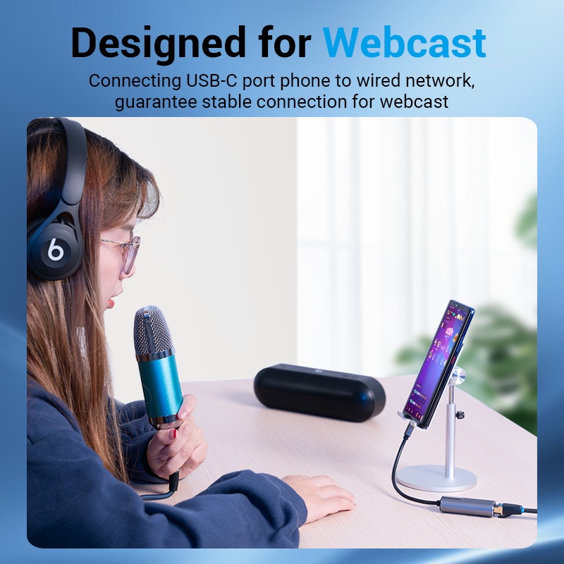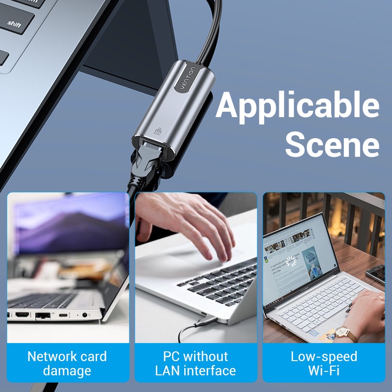 Vention การ์ดเครือข่าย ชุบทอง ความเร็วสูง Network Adapter 10/100 / 1000Mbps Type c to Ethernet lan RJ45 เข้ากันได้ iPhone16 แล็ปท็อป