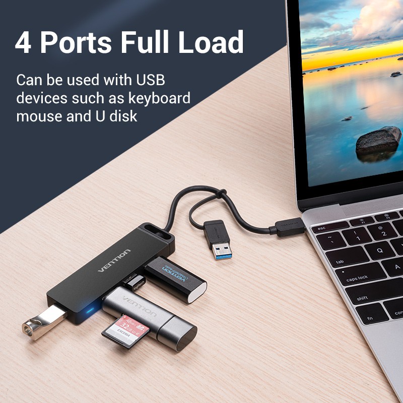 Vention USB HUB Type C Hub USB 3.0 2 in 1 USB Extension Hub ขยายอะแดปเตอร์พอร์ต USB หลายตัวพร้อม Micro B Charge Powered Supply สําหรับแล็ปท็อป PC ฮาร์ดไดรฟ์ U ดิสก์แท็บเล็ตโทรศัพท์มือถือ