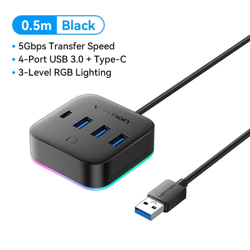 Vention พอร์ต USB HUB หลาย USB 2.0 3.0 Hub 4 พอร์ต PC USB Switch Splitter พร้อมตัวบ่งชี้ LED สําหรับแล็ปท็อป PC คอมพิวเตอร์แท็บเล็ต Hub Multi Extension อะแดปเตอร์ฮับ USB ความเร็วสูง