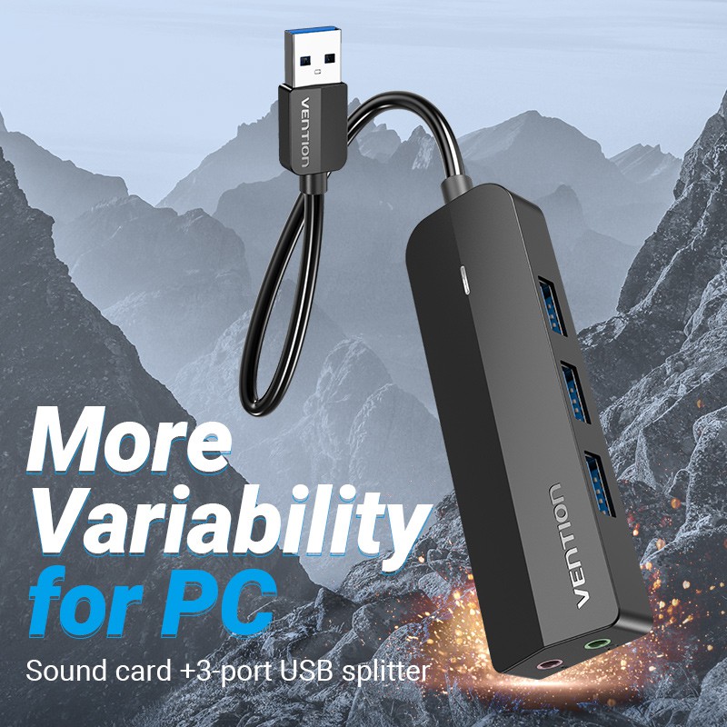 Vention ฮับ USB 3.5 มม.ไมโครโฟนหญิง extender multi USB พอร์ต HUB 3 พอร์ต USB HUB 3.0 USB HUB สําหรับคอมพิวเตอร์พีซี USB ฮับหลายพอร์ตหูฟังการ์ดเสียงและ USB Splitter