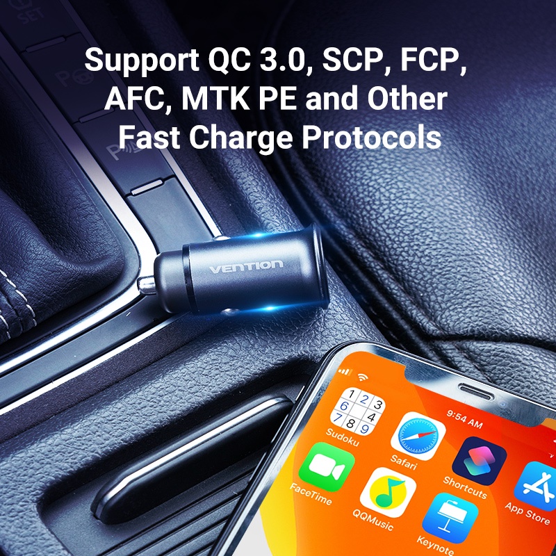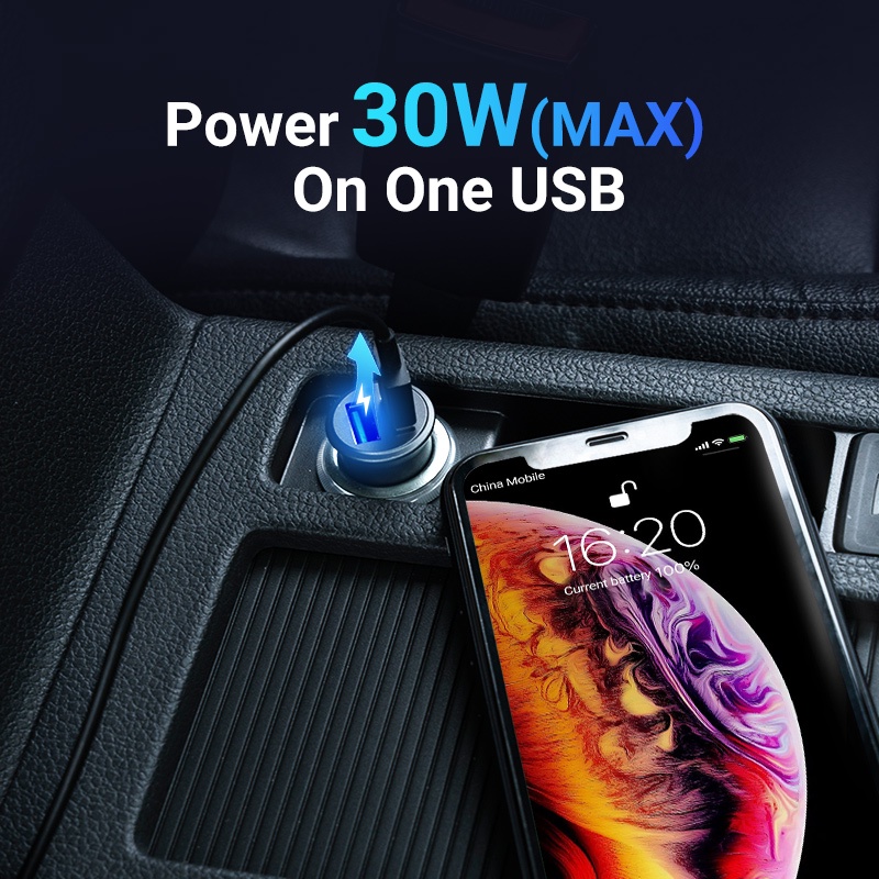 Vention ที่ชาร์จแบตในรถ USB A+C PD 30W Fast Charge อะลูมินัมอัลลอยสําหรับโทรศัพท์รถยนต์ car charger