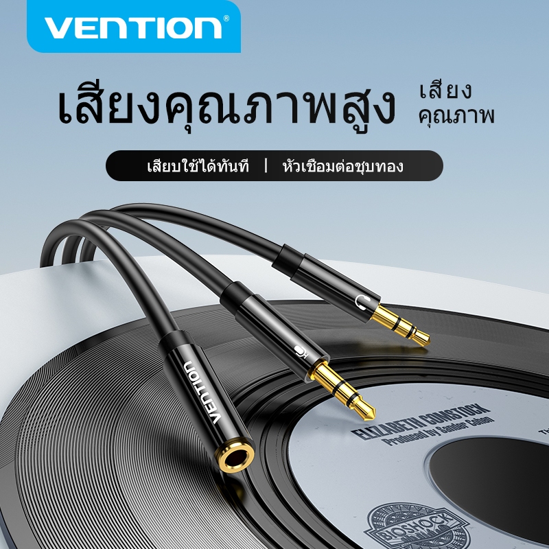 Vention อะแดปเตอร์หูฟัง แยกสายไมค์และหูฟัง 3.5 มม. ถึง ไมค์+เสียง สําหรับคอมพิวเตอร์ 3.5 มม. สำหรับหูฟัง เดสก์ท็อป แล็ปท็อป โทรศัพท์มือถือ