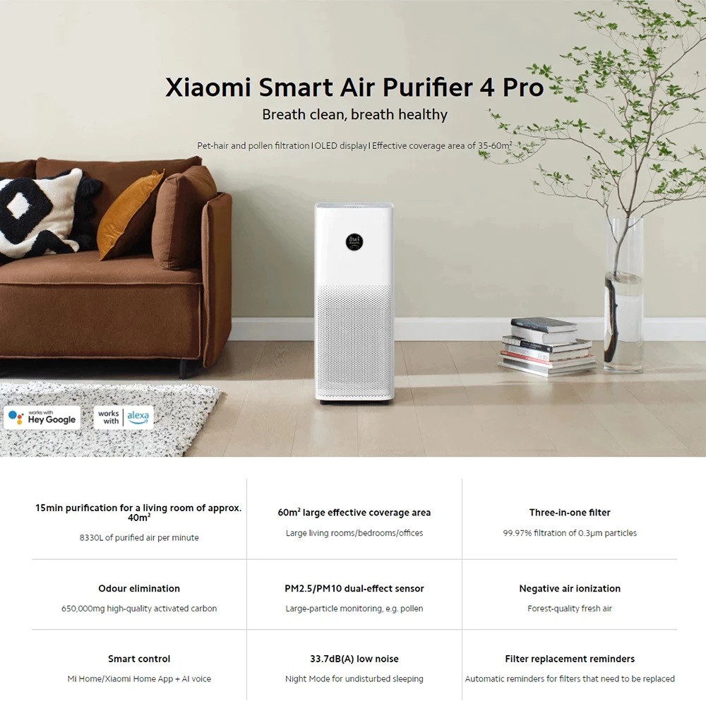 [NEW] Xiaomi Mi Smart Air Purifier 4 Lite/4 Pro / 5S เครื่องฟอกอากาศ กำจัดฟอร์มาลดีไฮด์/PM2.5 เหมาะพื้นที่ 25-43㎡