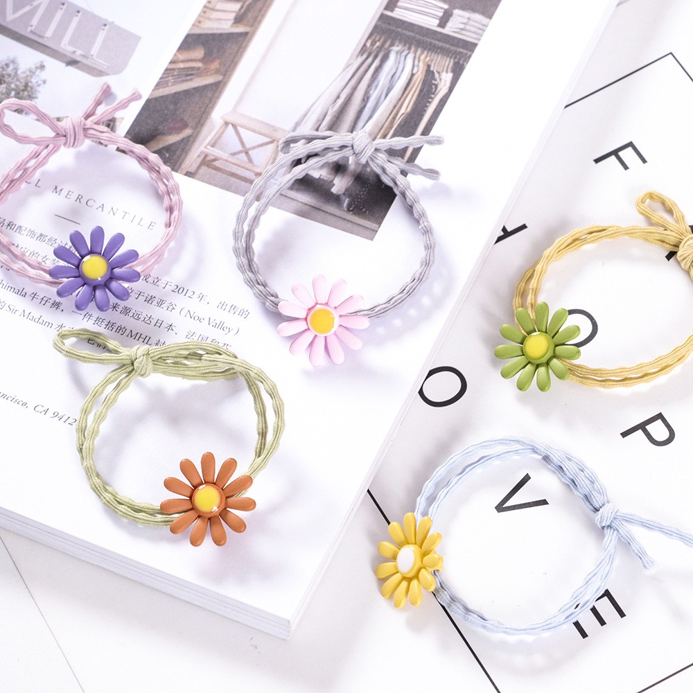 (A-006) พร้อมส่งจากไทย *ขั้นต่ำ 5 เส้น*ทุกสี1บาท* ยางรัดผมลายดอกไม้ดอกเดซี่ สไตล์เกาหลี