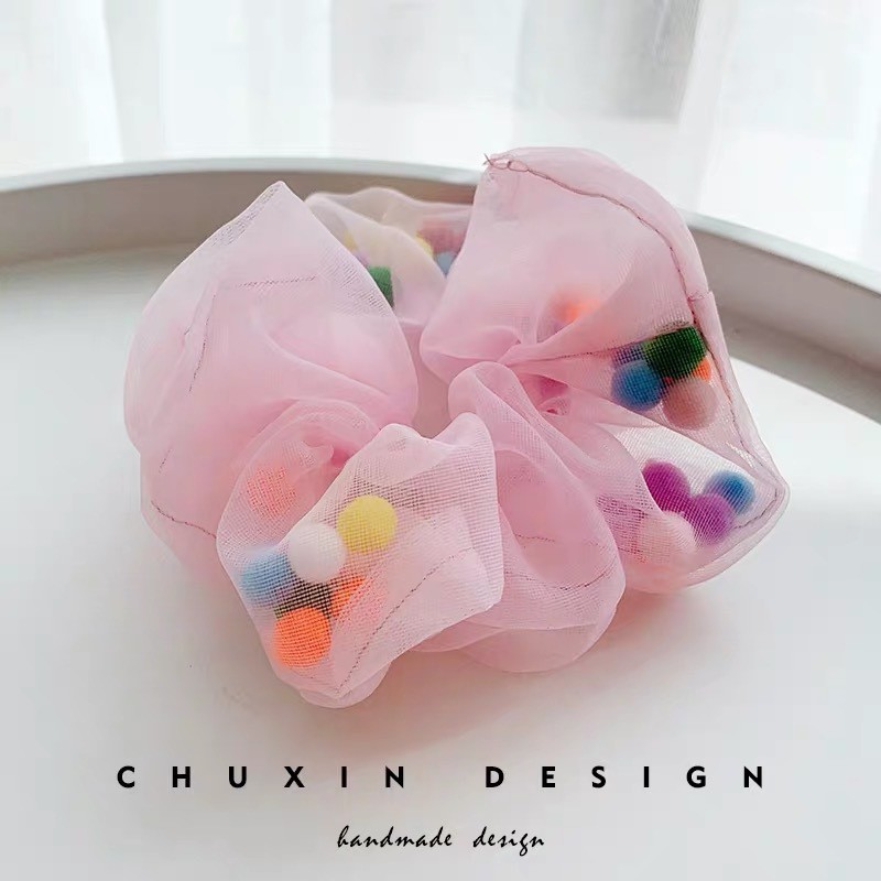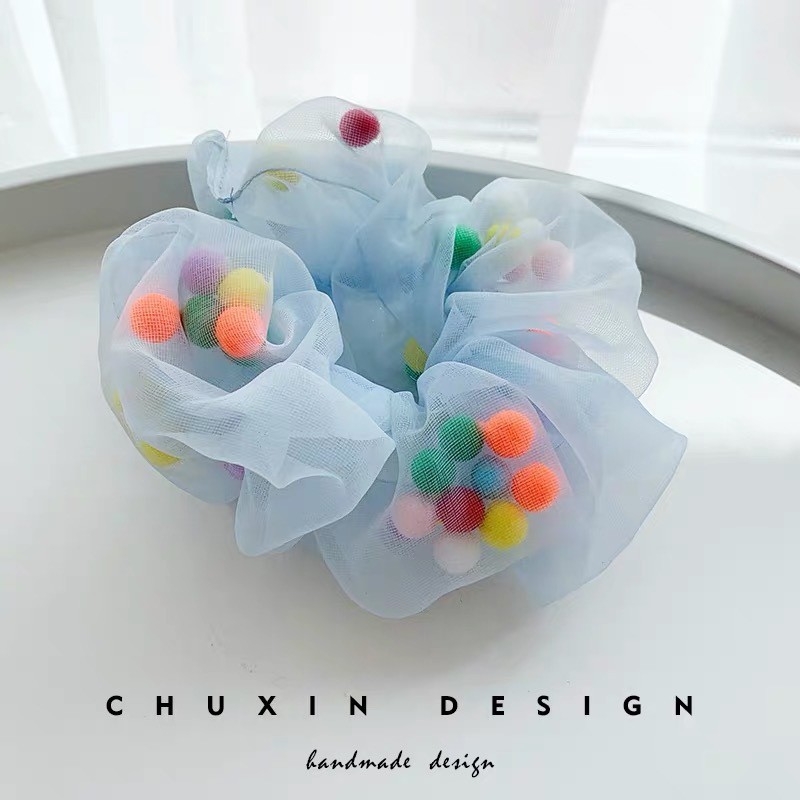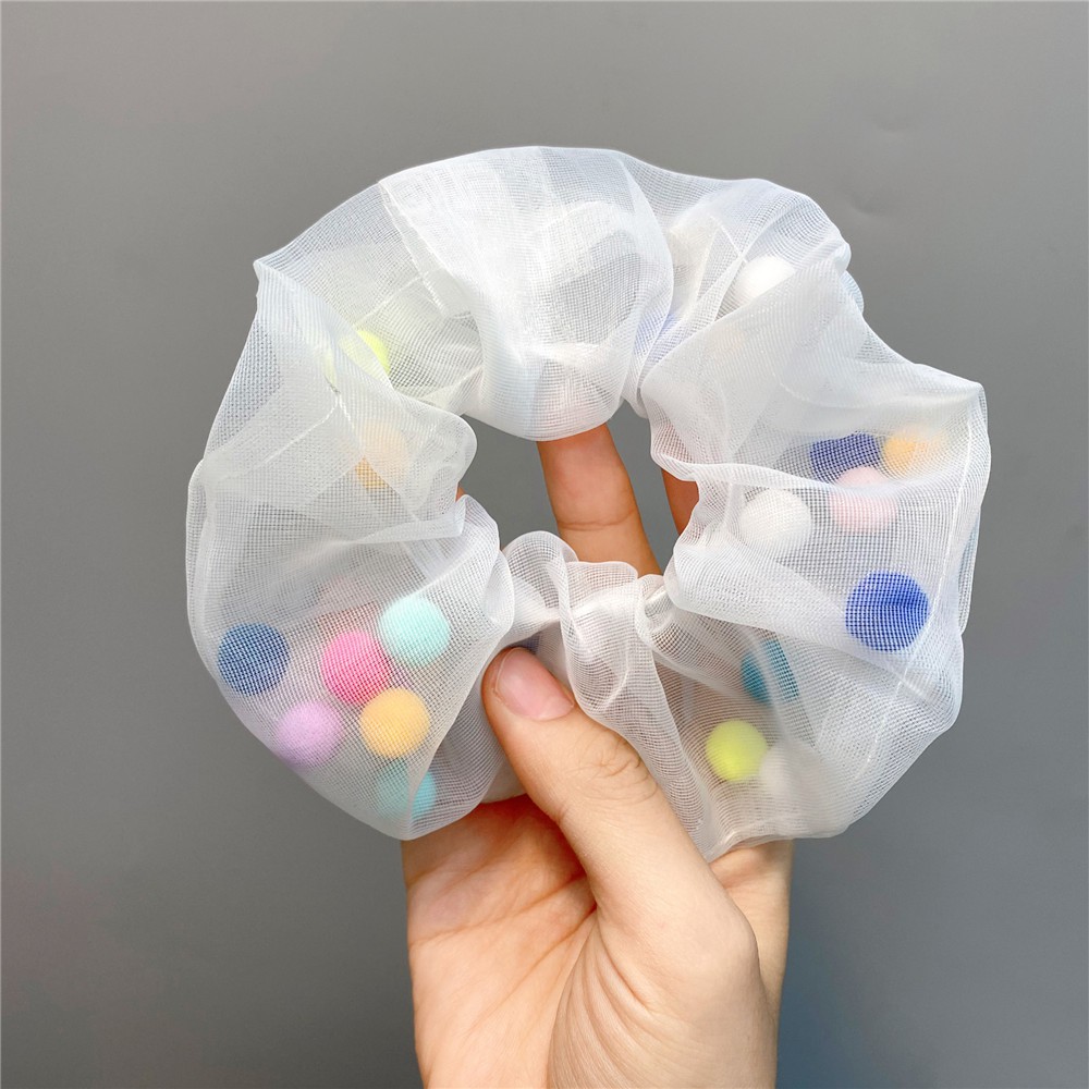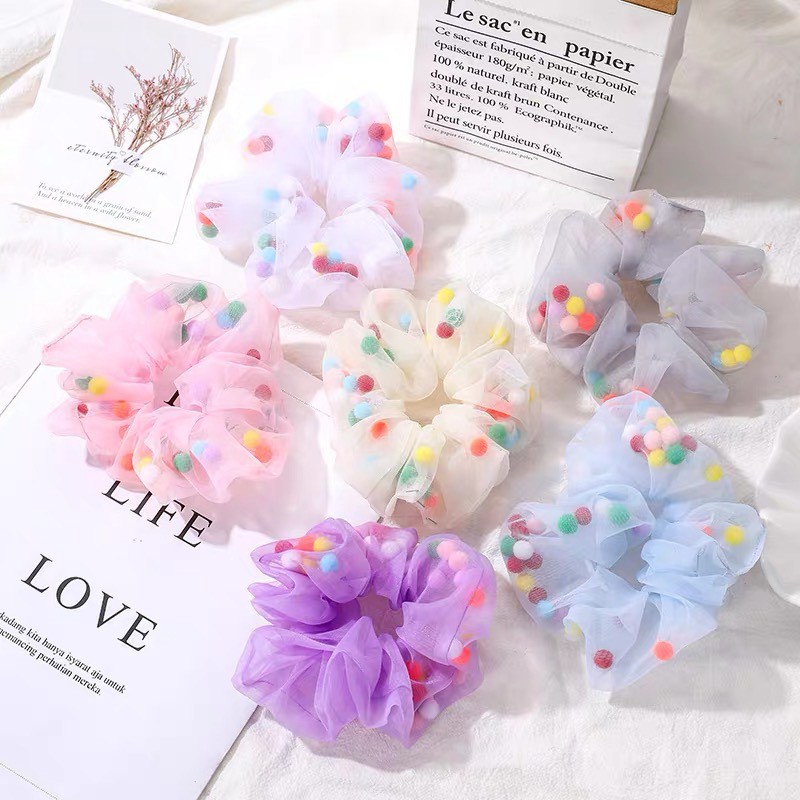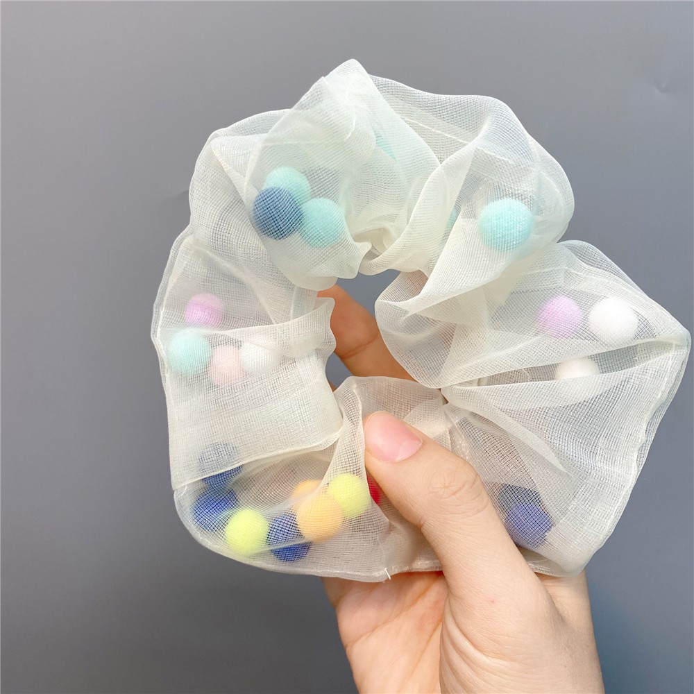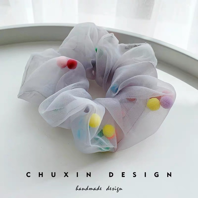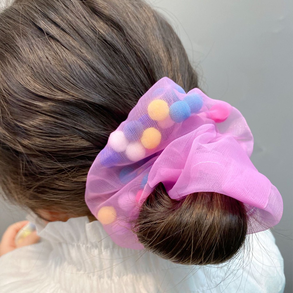 (A-090) พร้อมส่งจากไทย ยางรัดผมโดนัท ชีฟองยางมัดผมเกาหลี โดนัทมัดผมเม็ดบีทสีสัน ซีฟองมีบัวลอย