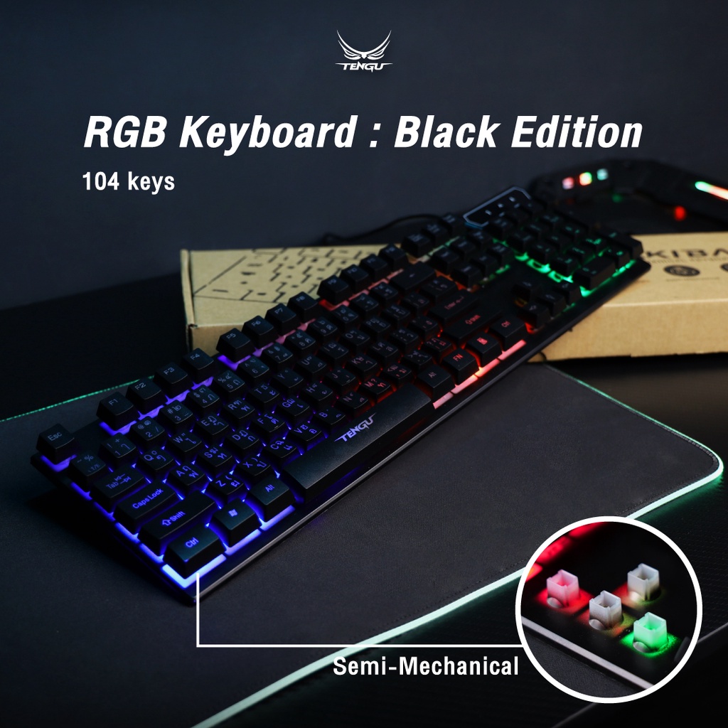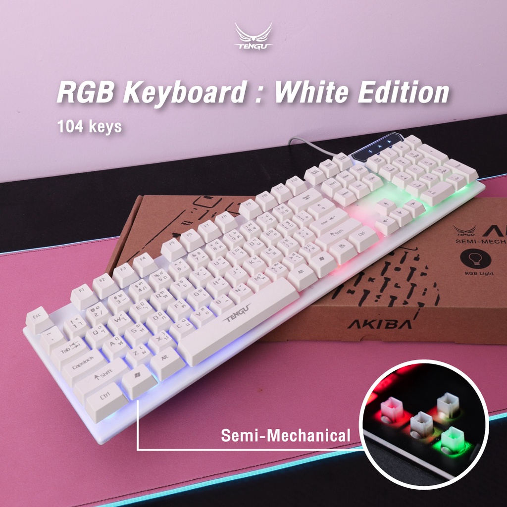 คีย์บอร์ดเกมมิ่งรุ่นAKIBA ไฟ RGB (Semi-Mechanical) Gaming Keyboard100%แป้นภาษาไทย by tengu