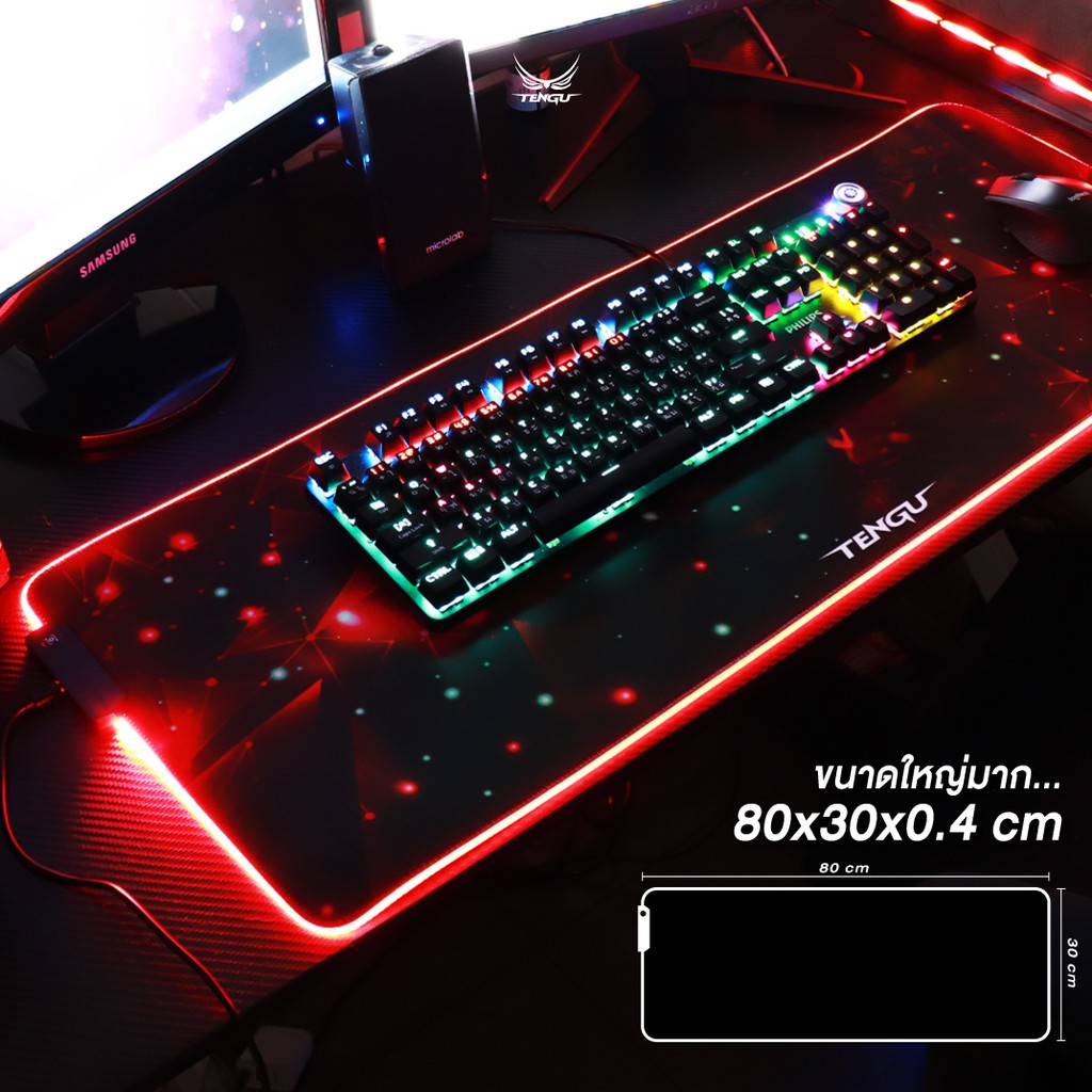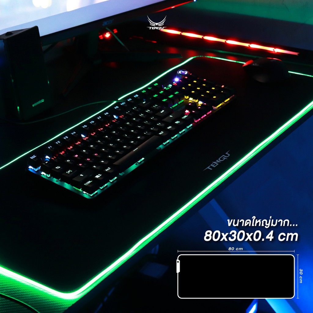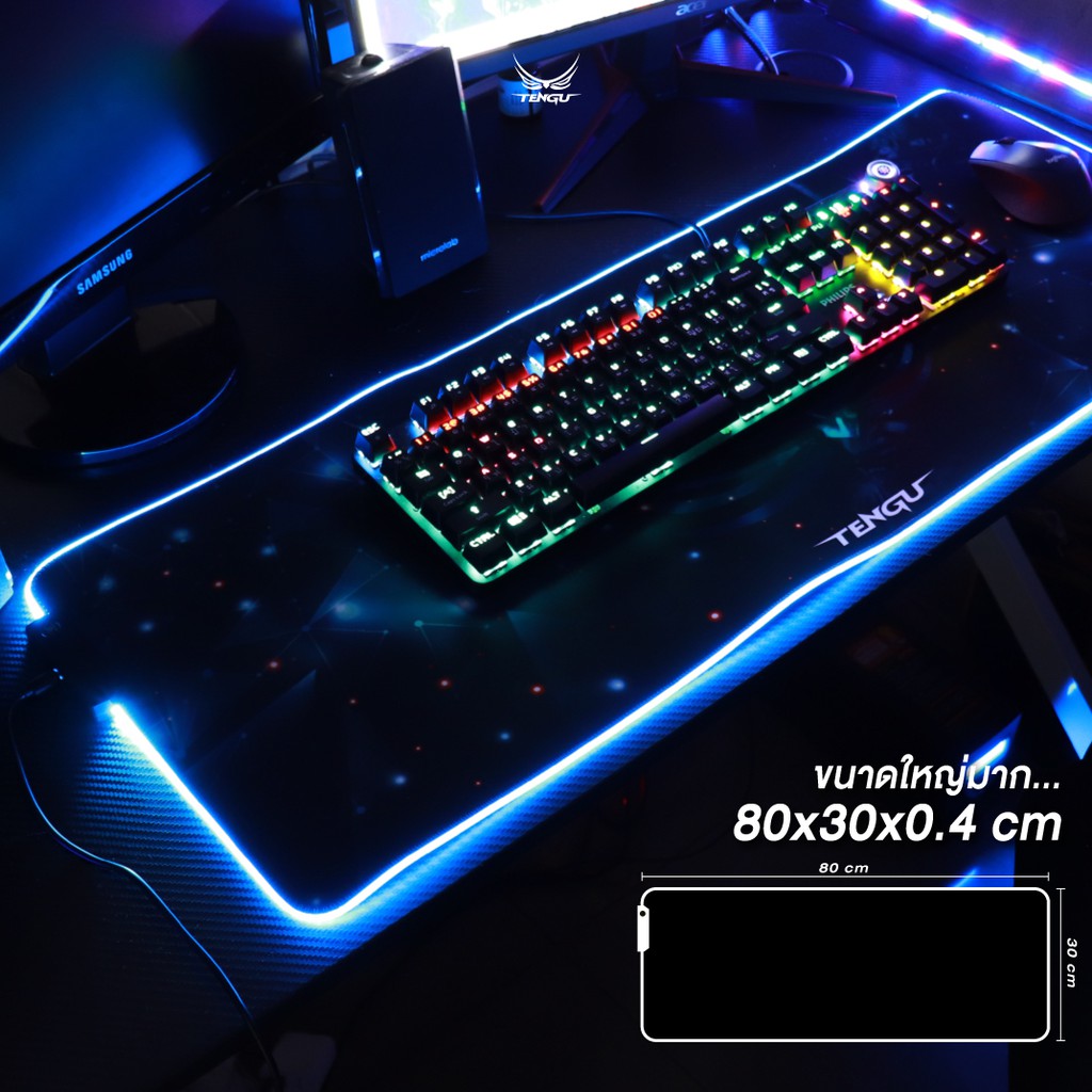 🚦แผ่นรองเมาส์ LED🚦 จากแบรนด์ Tengu ขนาดใหญ่ 80*30ซม. Mouse Pad แผ่นรองเม้ายี่ห้อแท้ By Tengu
