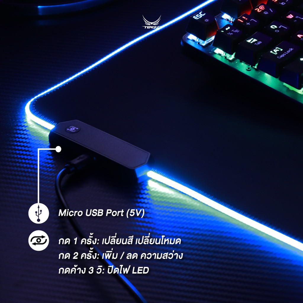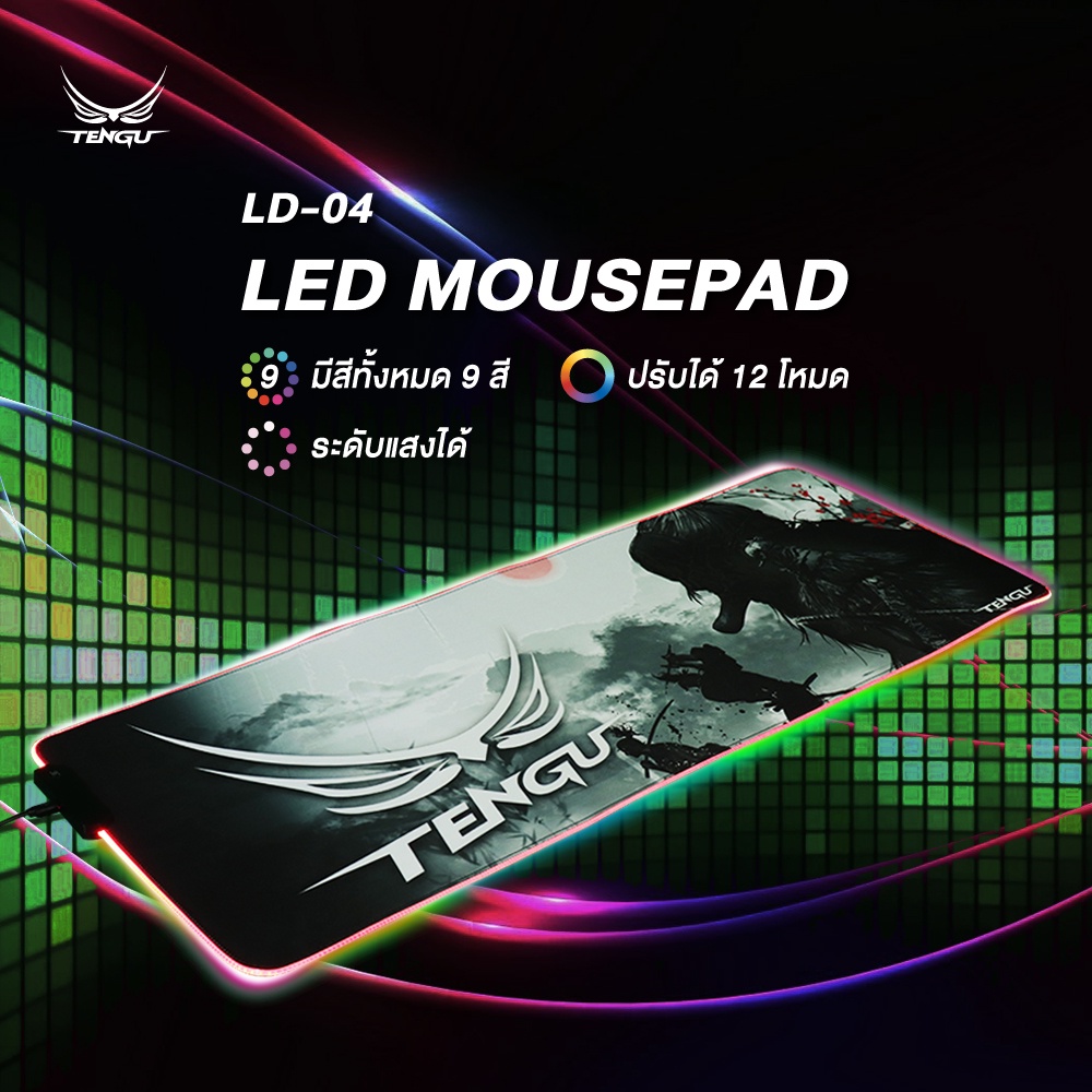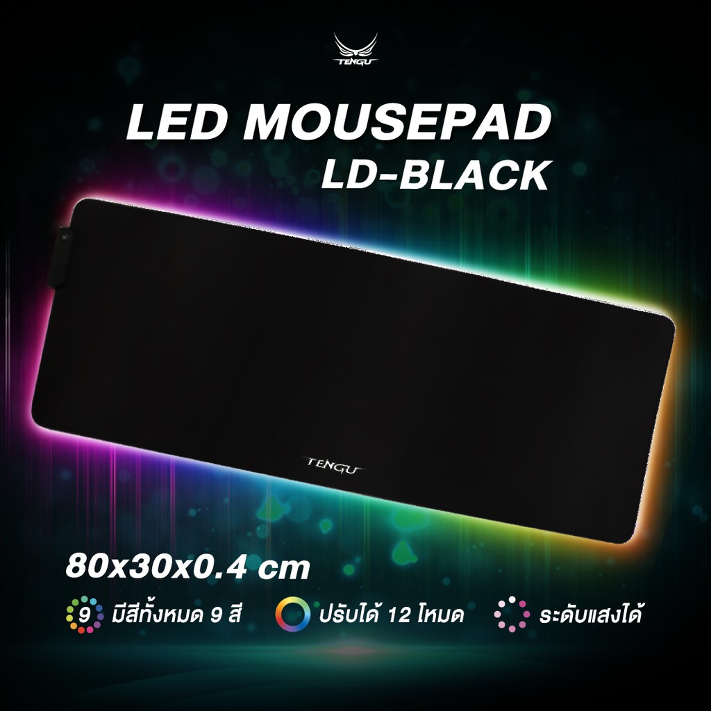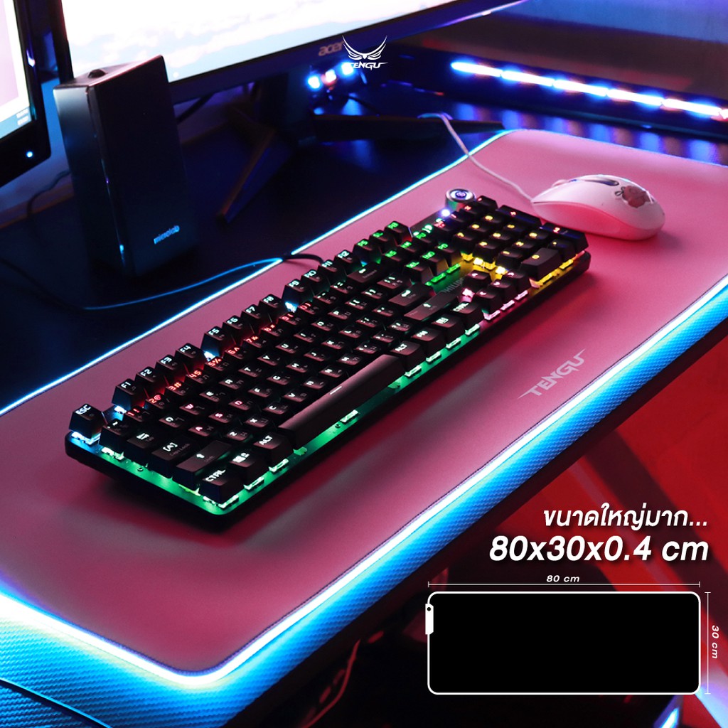 🚦แผ่นรองเมาส์ LED🚦 จากแบรนด์ Tengu ขนาดใหญ่ 80*30ซม. Mouse Pad แผ่นรองเม้ายี่ห้อแท้ By Tengu