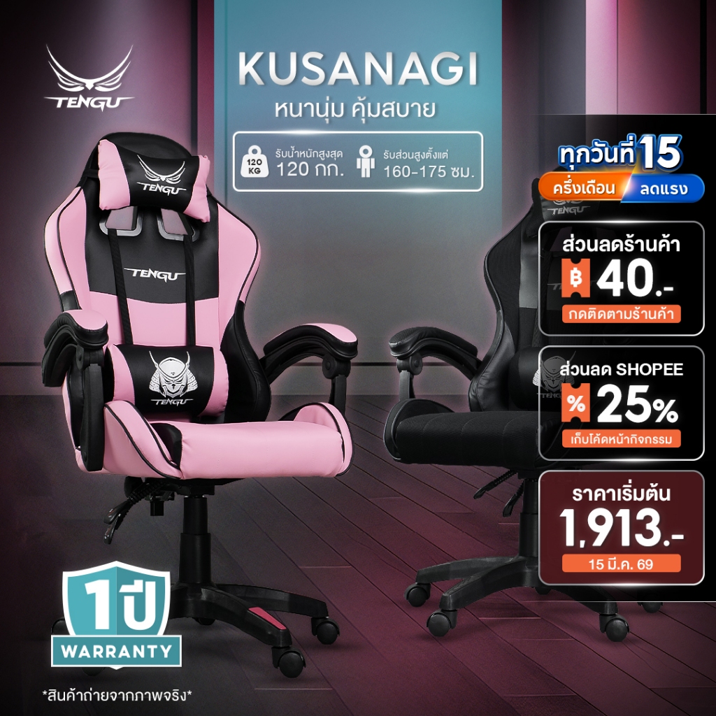 Tengu เก้าอี้เกมมิ่ง รุ่น Kusanagi เก้าอี้เล่นเกม ปรับเอนนอน 135 gaming Chair ประกัน 1ปี เก้าอี้คอม