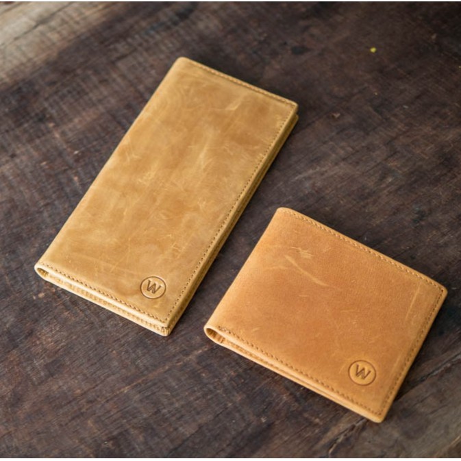 WALLER กระเป๋าสตางค์หนังวัวแท้ รุ่นหนังนูบัคสีน้ำตาล ใบสั้นและใบยาว ยิ่งใช้ยิ่งสวย