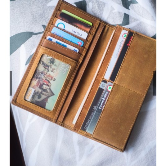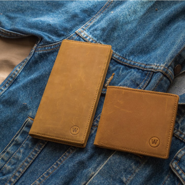 WALLER กระเป๋าสตางค์หนังแท้รุ่นหนังนูบัค สีน้ำตาลหนังวัว หนังแท้ ยิ่งใช้ยิ่งสวย