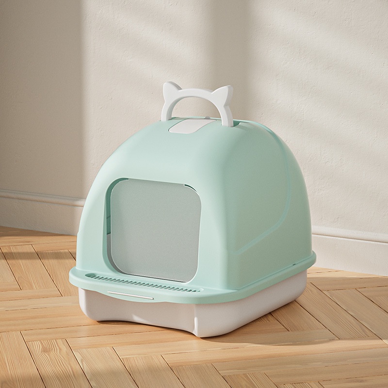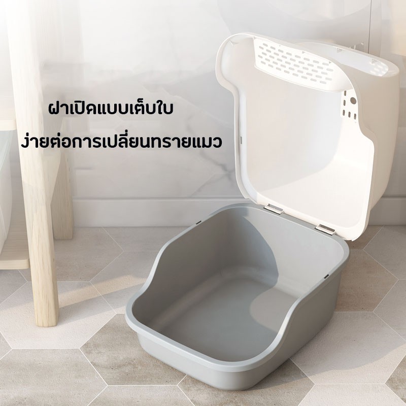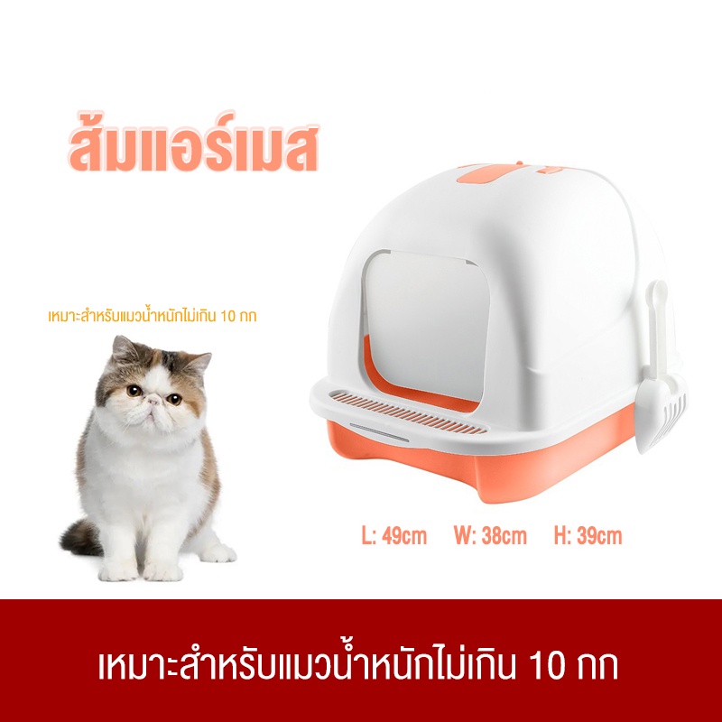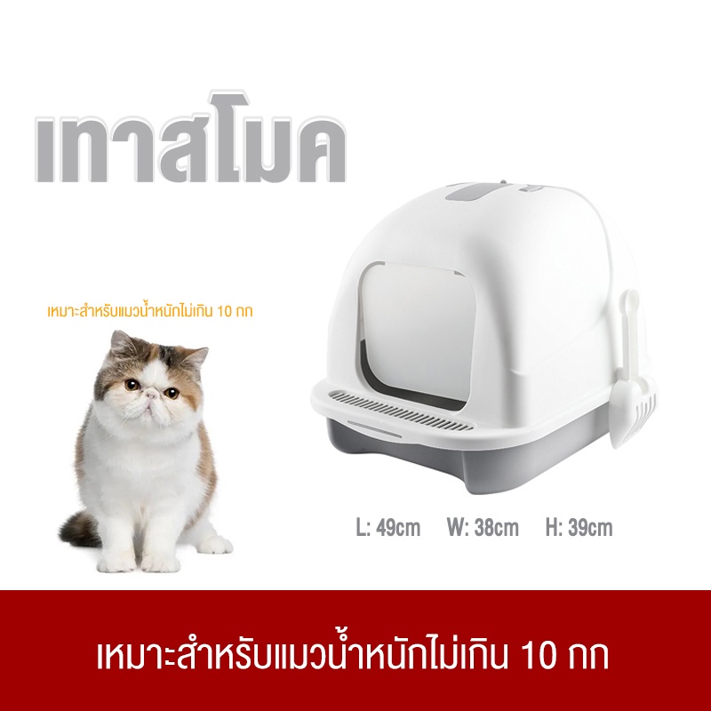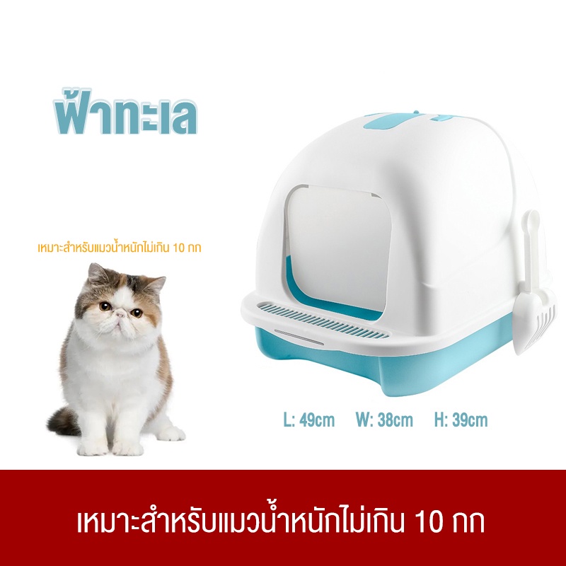 ห้องน้ำแมว ห้องน้ำแมว ป้องกันทรายแมวล้นออกป้องกันกลิ่นเหม็น กระบะทรายแมว พร้อมที่ตักทราย ห้องน้ำแมวทรงโดม ห้องน้ำแมวใหญ่