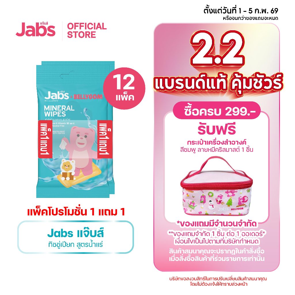 Jabs x BELLYGOM Mineral Wipes ทิชชู่เปียก สูตรน้ำแร่ธรรมชาติ 10 แผ่น (แพ็คโปรโมชั่น 1 แถม 1) x12