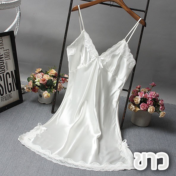 พร้อมส่ง💥LadyCloset Shop💥 (N251) ชุดนอนผ้าไหมลูกไม้ สุดเซ็กซี่ สำหรับผู้หญิง