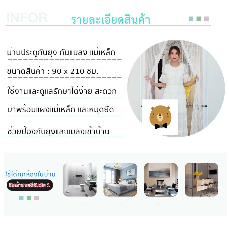 ม่านกันยุงสำเร็จรูป [แบบสีพื้น] ม่านกันแมลง Mosquito Door Net ใช้งานได้สะดวก