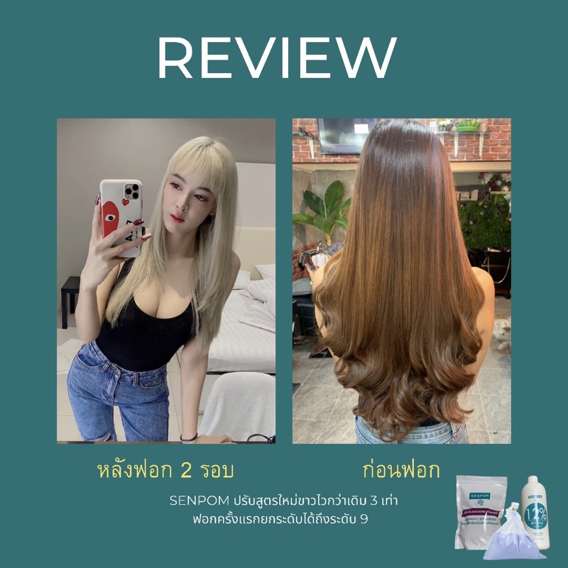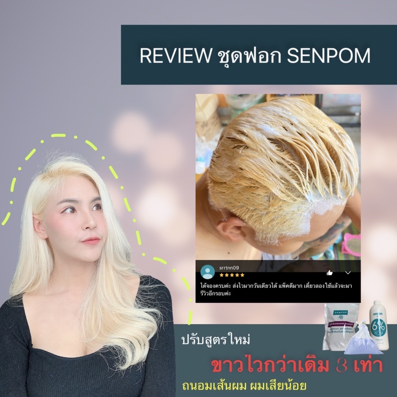 ผงฟอกผม SENPOM เฉพาะผงฟอก สูตรผมเสียน้อย ผงฟอกสีผมฟอกขาวไม่ติดเหลือง ไม่แสบหัวกลิ่นไม่ฉุนเกรดพรีเมียม ขนาด 500 กรัมทำสี
