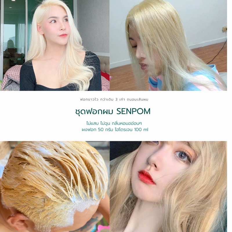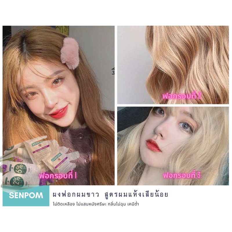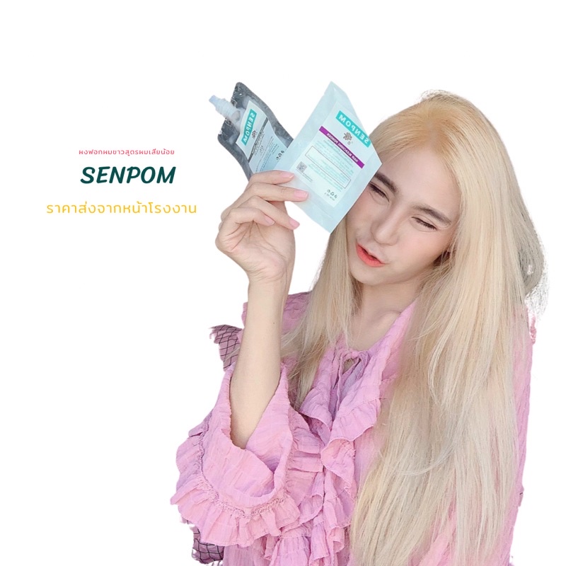 ชุดเล็ก กัดผมขาว ชุดฟอกผม SENPOM ผงฟอก 35 กรัม ไฮโดรเจน 100 mlอย่างดีขาวไวฟอกได้ถึงระดับ 9-10 ผมเสียน้อย ไม่มีแอมโมเนีย