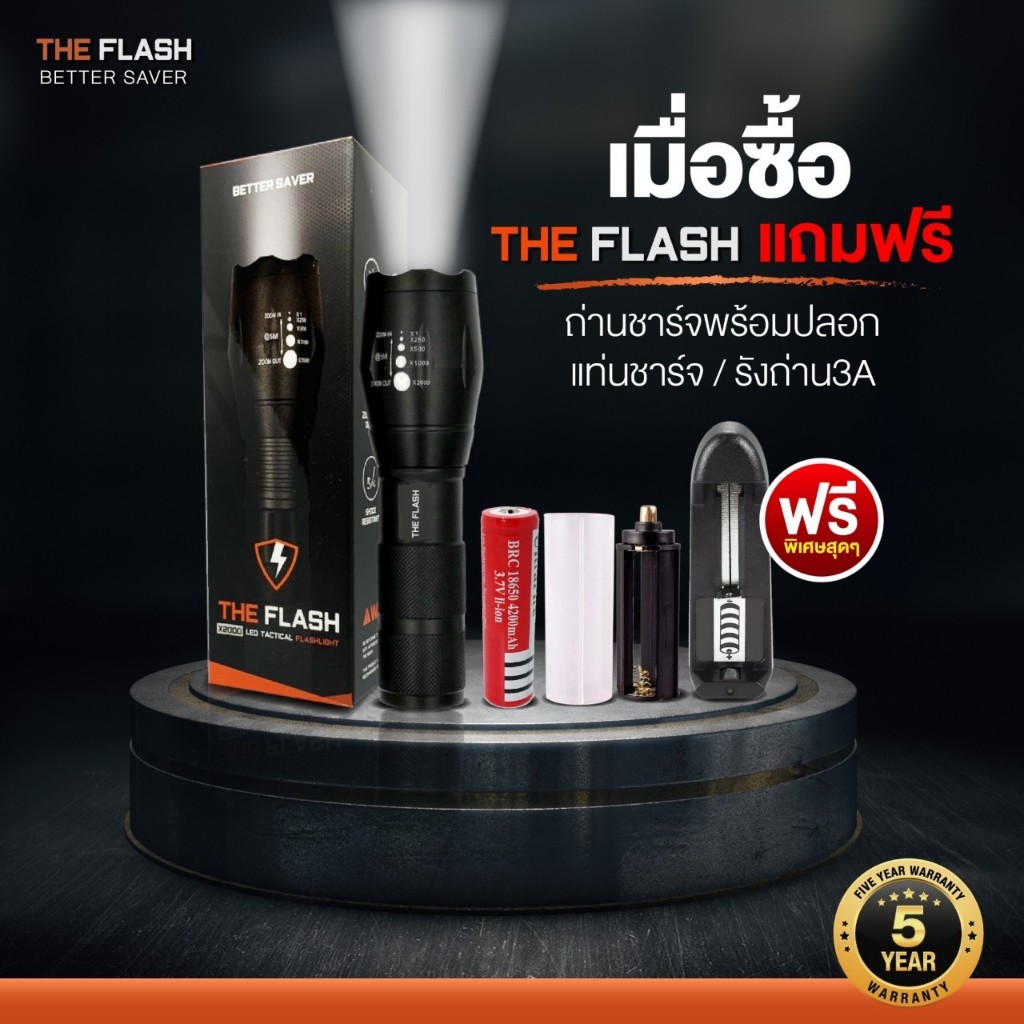 🔥รุ่นยอดนิยม สว่างจริง 🔦รับประกัน 5ปี รีวิวจริง ของตรงปก ไฟฉาย พลังสูง LED THE FLASH Thailand ซูมได้