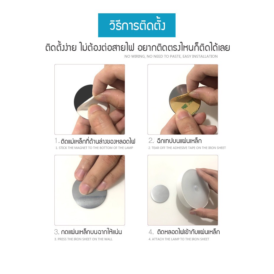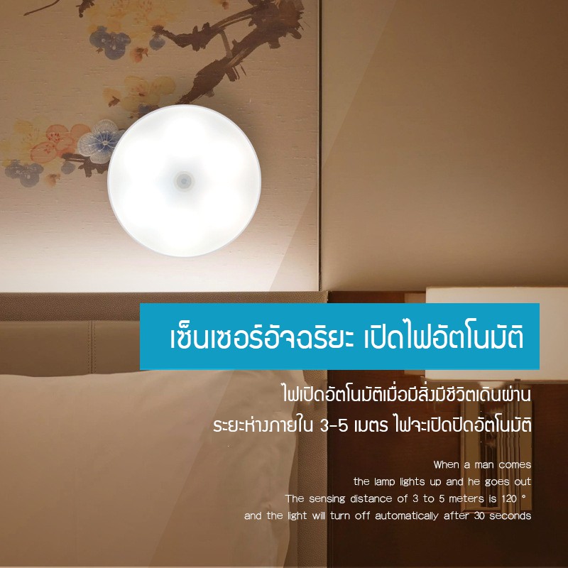 Light bulb หลอดไฟ หลอดไฟติดผนัง หลอดไฟพกพา ไฟติดผนัง LED หลอดไฟติดตู้ ไฟติดเพดาน แสงสีขาวและสีเหลือง เปิดปิดอัตโนมัติ