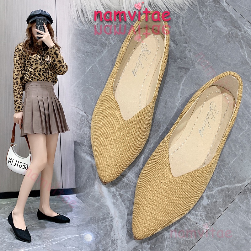 Namvitae รองเท้าลำลองแบบสวม ส้นแบน ระบายอากาศ สำหรับผู้หญิง