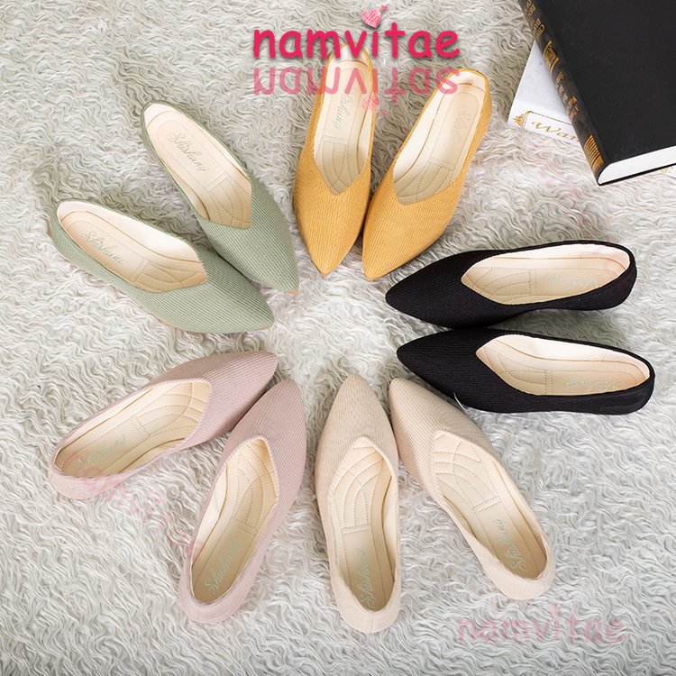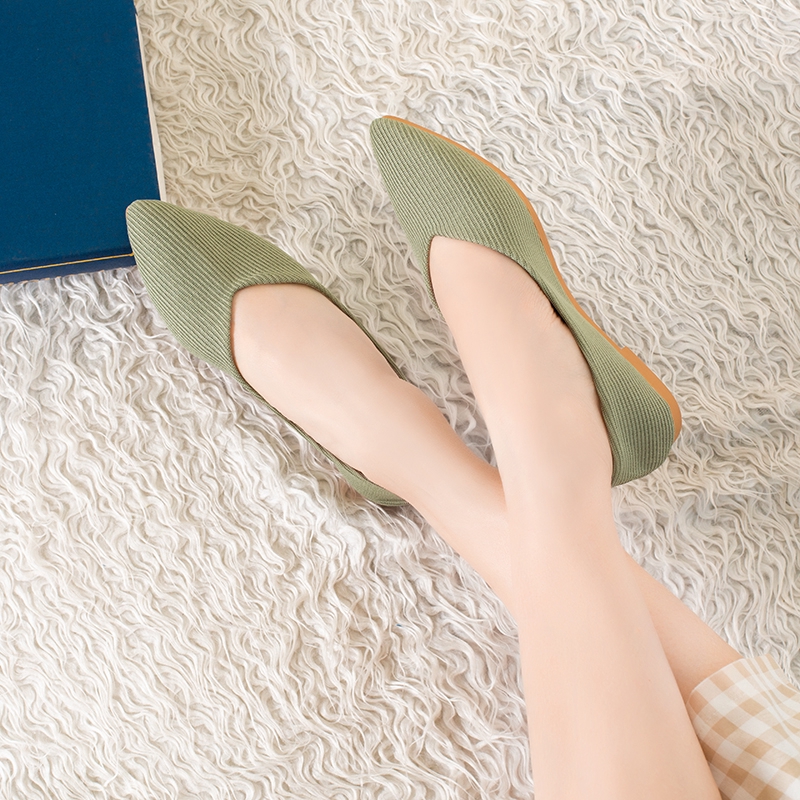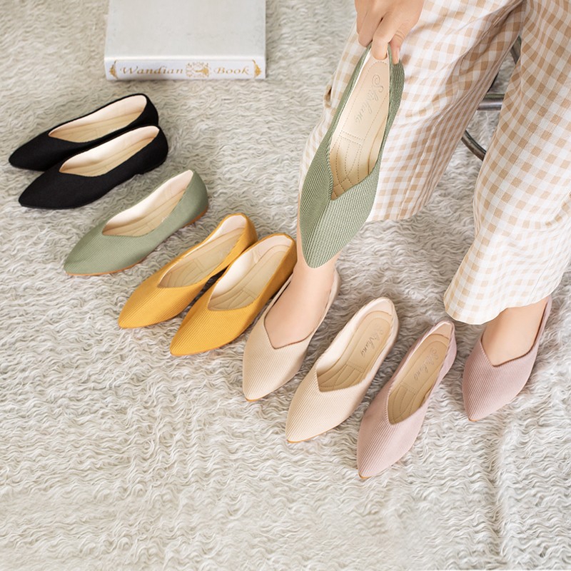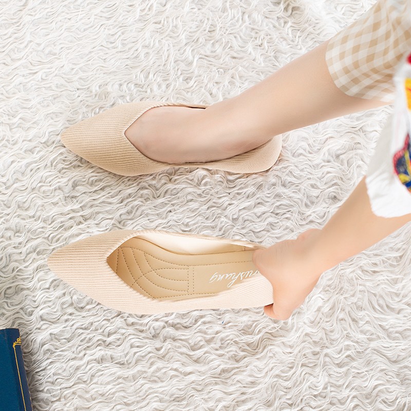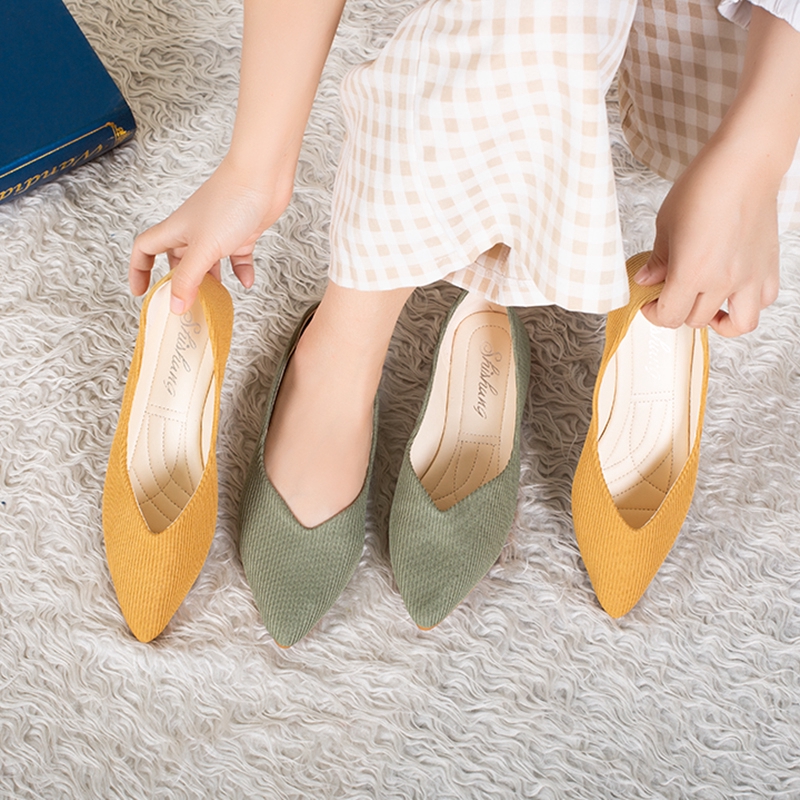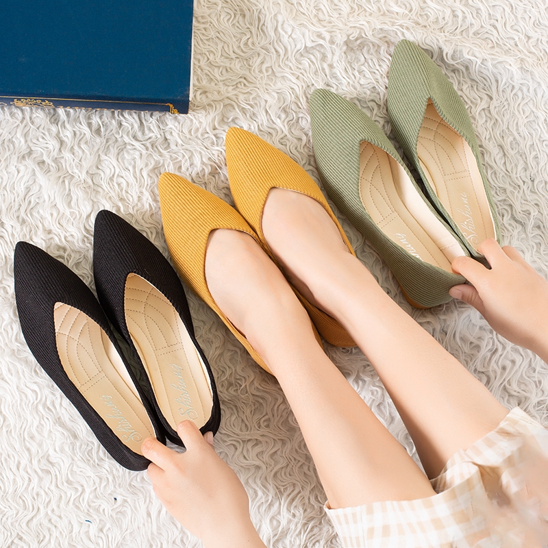 รองเท้าหนัง หัวแหลม ส้นแบน แฟชั่นสําหรับสตรี