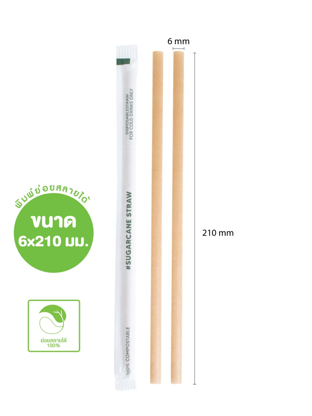 BIO-ECO หลอดชานอ้อย ห่อกระดาษ (100ชิ้น/แพ็ค) หลอดรักษ์โลก ย่อยสลายได้ 100%
