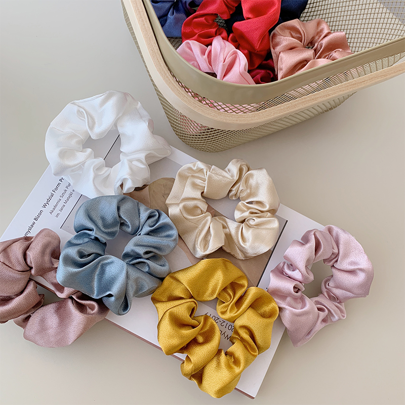 ยางรัดผม ผ้าซาติน ขนาดใหญ่ สไตล์เกาหลี ฝรั่งเศส ย้อนยุค เรียบง่าย