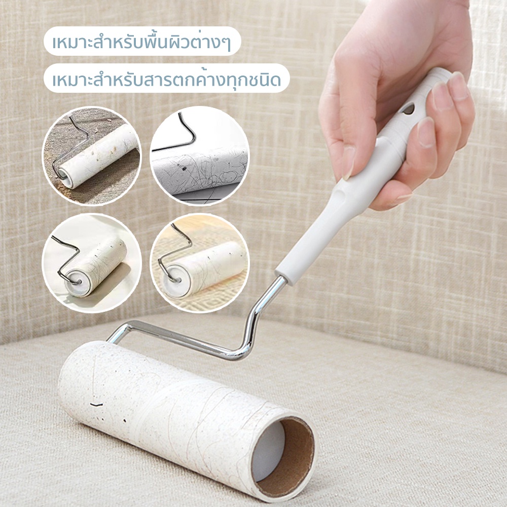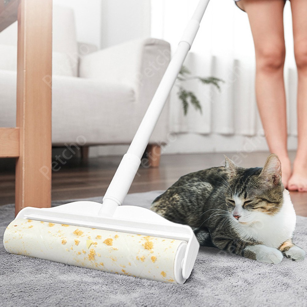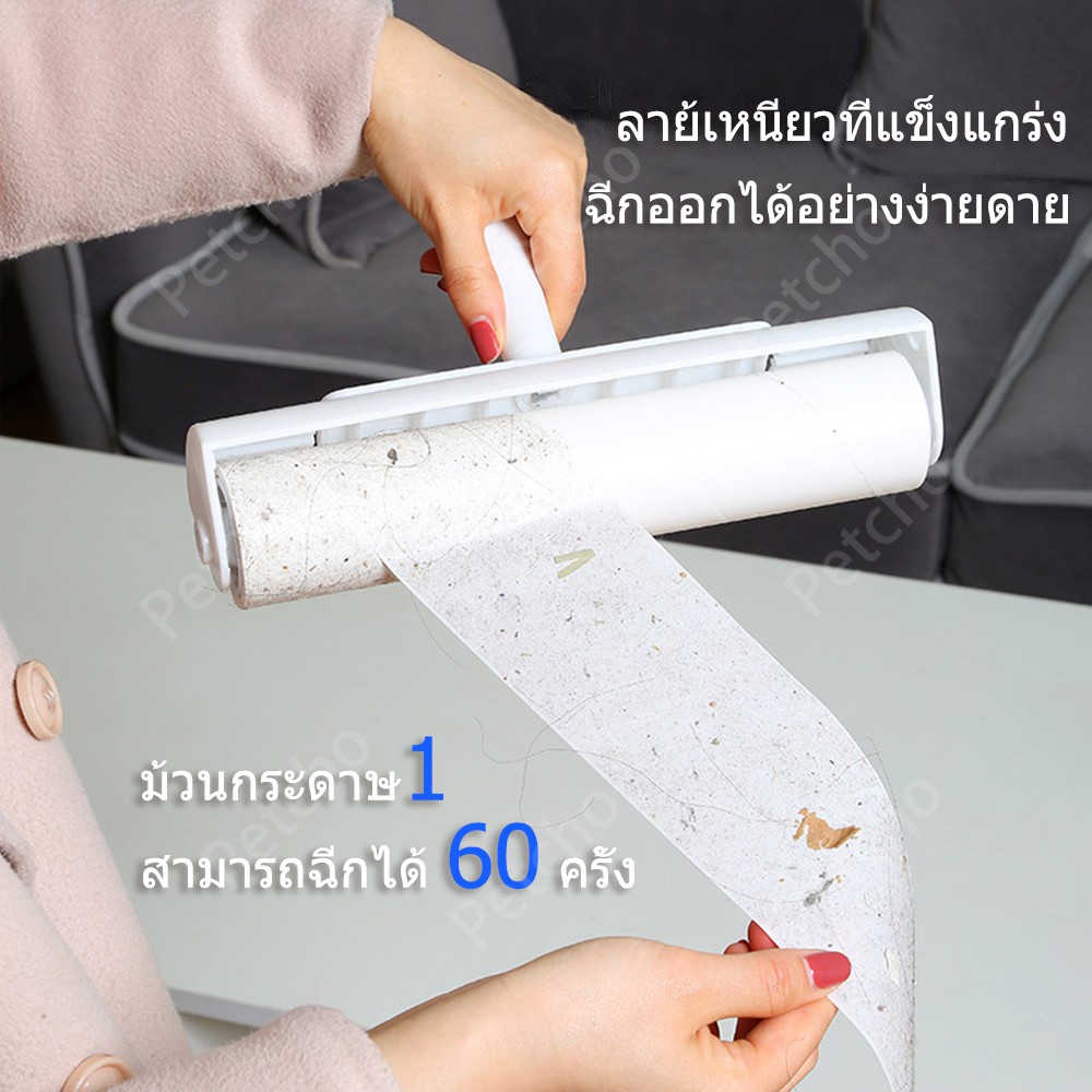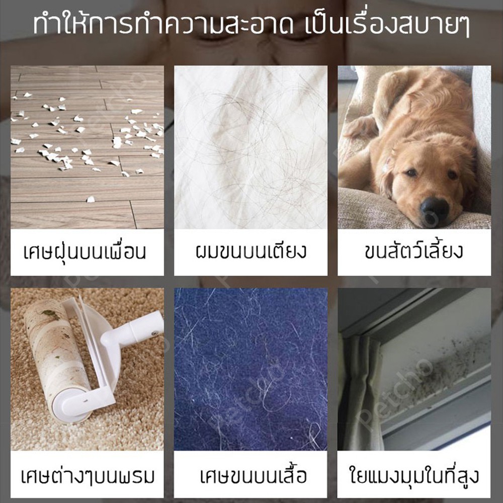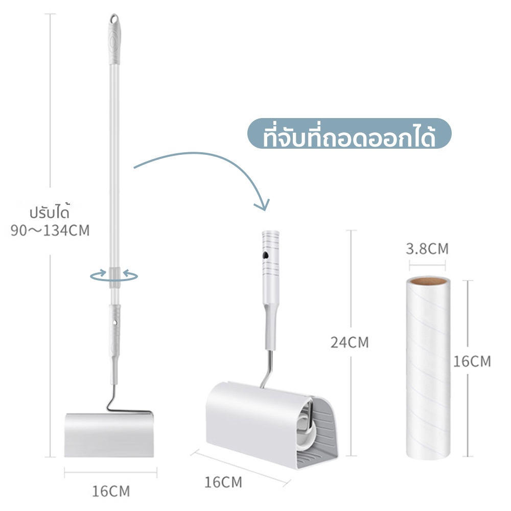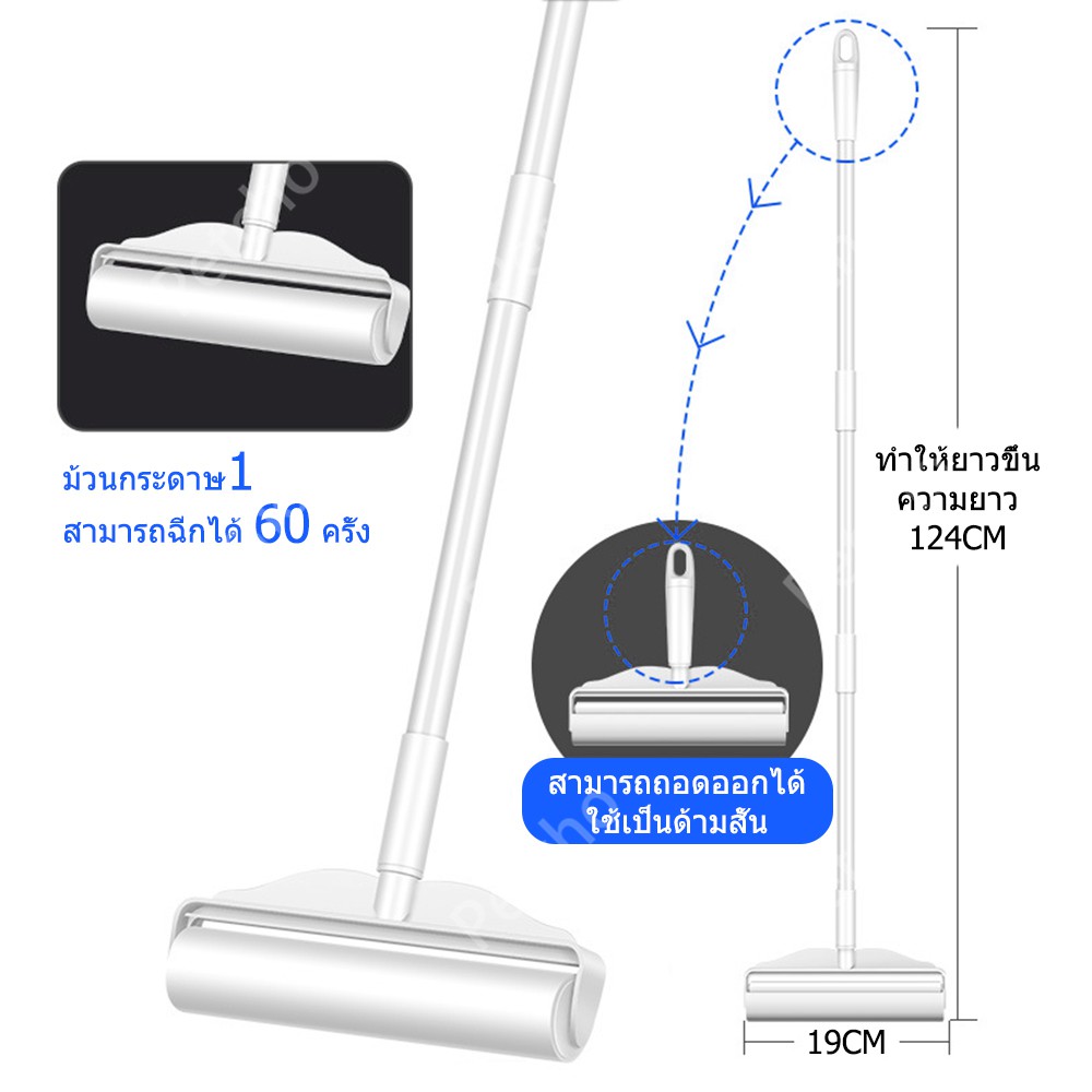Petcho ไม้ม็อบชุดลูกกลิ้งทำความสะอาด เศษฝ ุ่น เศษผม ด้ามจับปรับความยาวได้ รีฟิลลูกกลิ้งขจัดฝุ่น กระดาษกาว ขนสัตว์เล