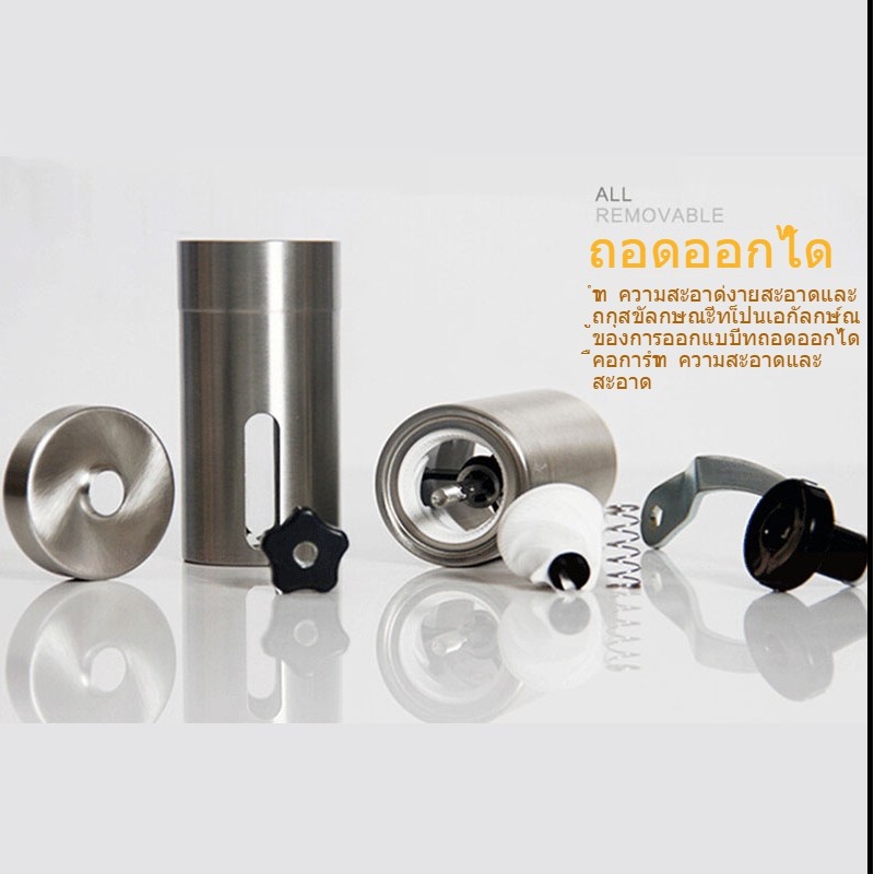 เครื่องบดเมล็ดกาแฟ ที่บดกาแฟมือหมุน ที่บดกาแฟสแตนเลสขนาดพกพา Stainless Steel Hand Coffee Grinder