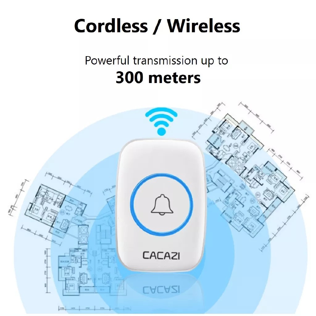 【 ใช้แบตเตอรี่】Cacazi ออดไร้สาย ระยะการทำงานสูงสุด 300 เมตรเมโลดี้ที่สดใสเสียงเรียกเข้า 38 เสียงกันน้ำและกันฝุ่น Doorbel