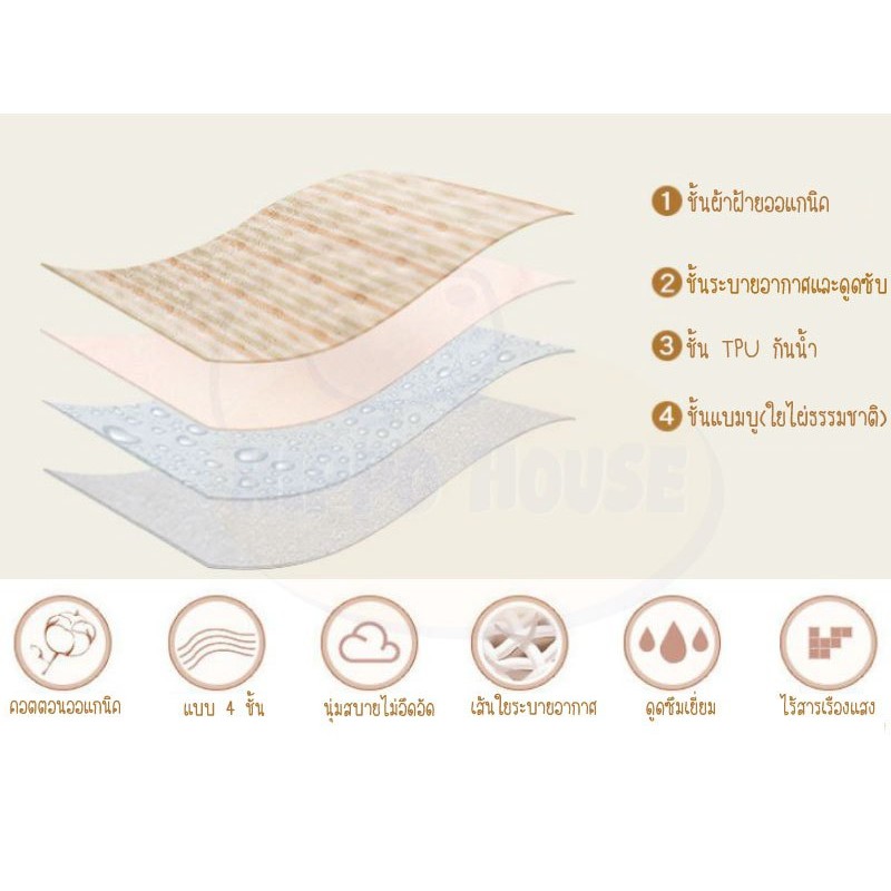 ผ้ารองกันเปื้อนออแกนิคหนา4ชั้น เม่เปียกชื้นผิวทำให้เกิดผดผื่น