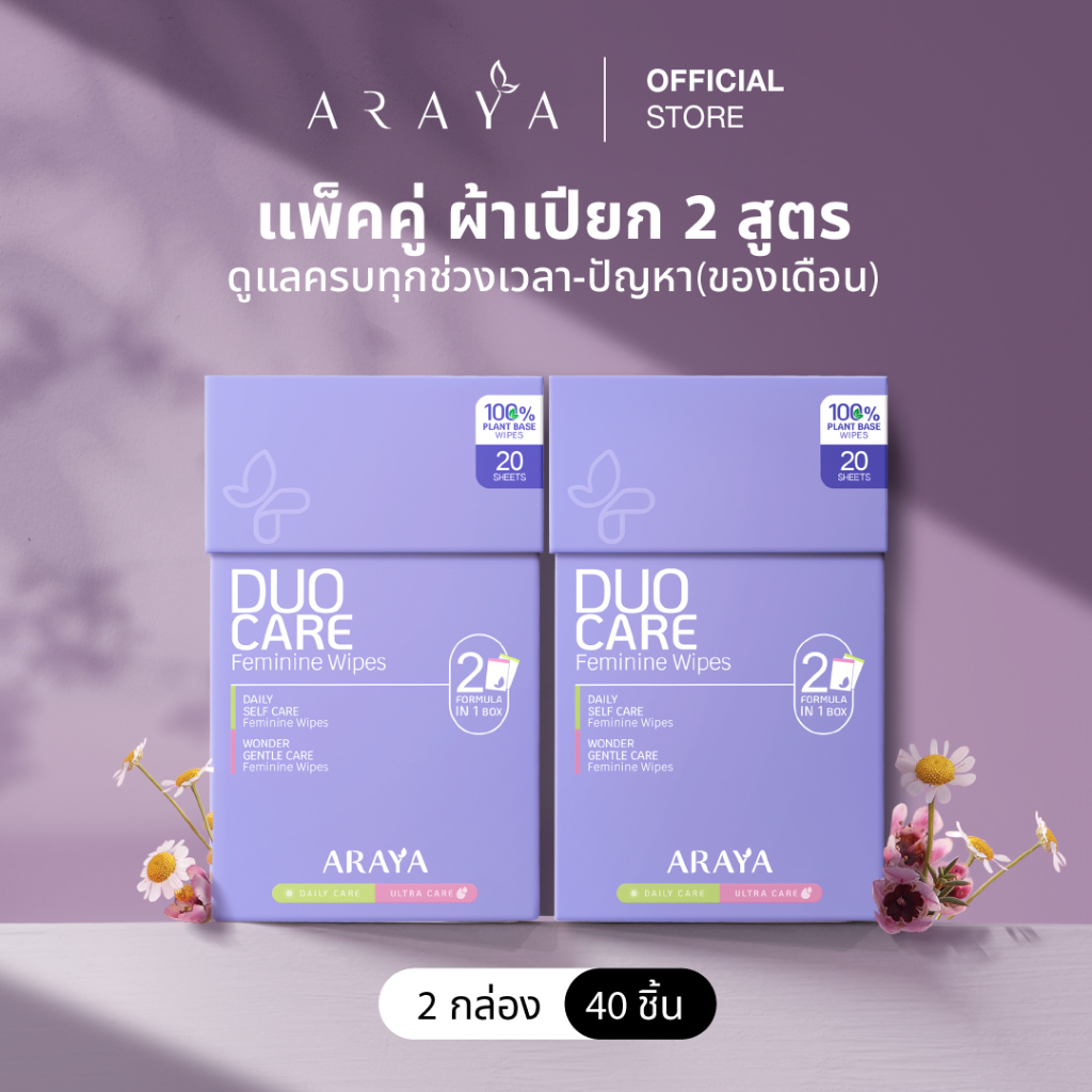 (W) ARAYA ผ้าเปียก 2 สูตรดูแลจุดซ่อนเร้น — สำหรับทุกวัน และวันเสี่ยง สะอาด อ่อนโยน ฟื้นสมดุล เสริมปราการผิว