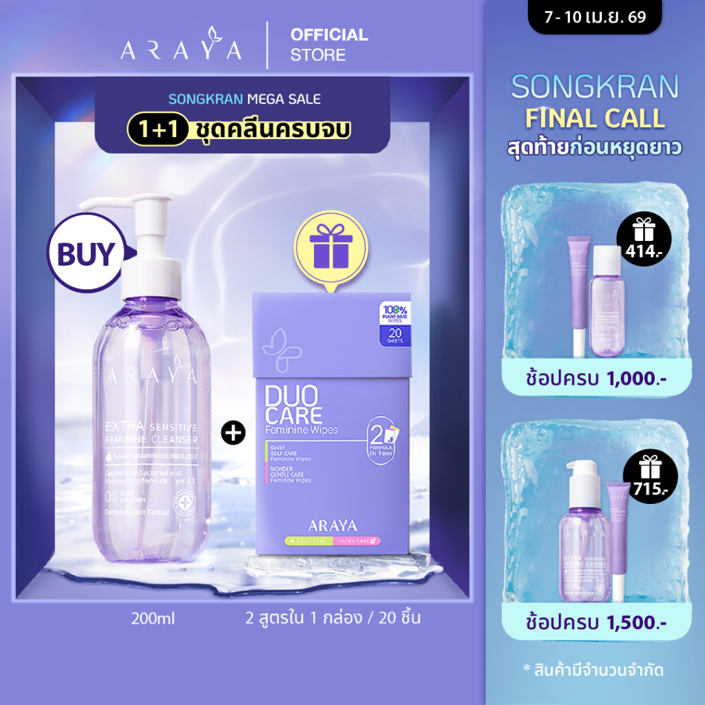 [1แถม1] (CS200) ARAYA (อารยา)ผลิตภัณฑ์ทำความสะอาดจุดซ่อนเร้น 200ml. ARAYA Extra Sensitive Feminine Cleanser