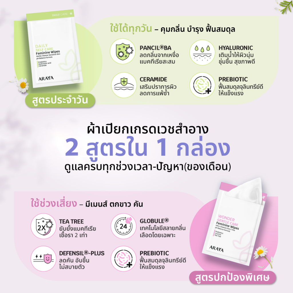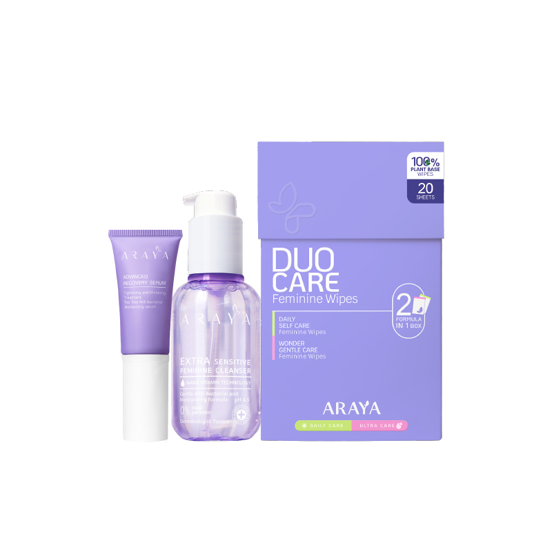 (MSW1)ARAYA(อารยา)ขนาดพกพาผลิตภัณฑ์ทำความสะอาดจุดซ่อนเร้น100ml. เซรั่ม 15ml ทิชชู่เปียก 20 ชิ้น