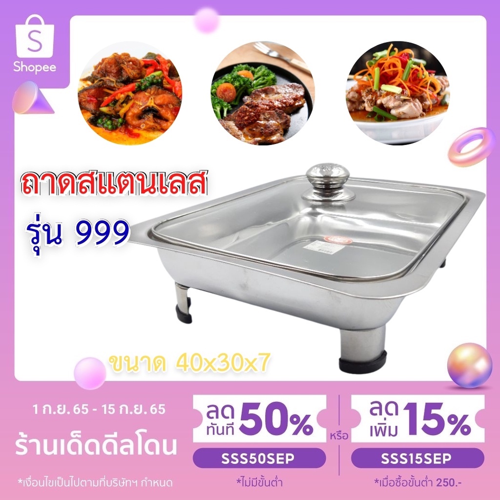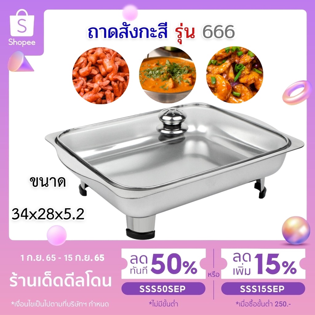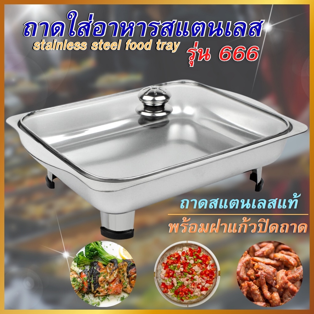 ถาดใส่อาหารสแตนเลสอย่างดีพร้อมขาตั้งและฝาปิด ใส่ข้าวแกงขายของได้ดีเยี่ยมถาดสแตนเลสทนทานไม่เป็นสนิม