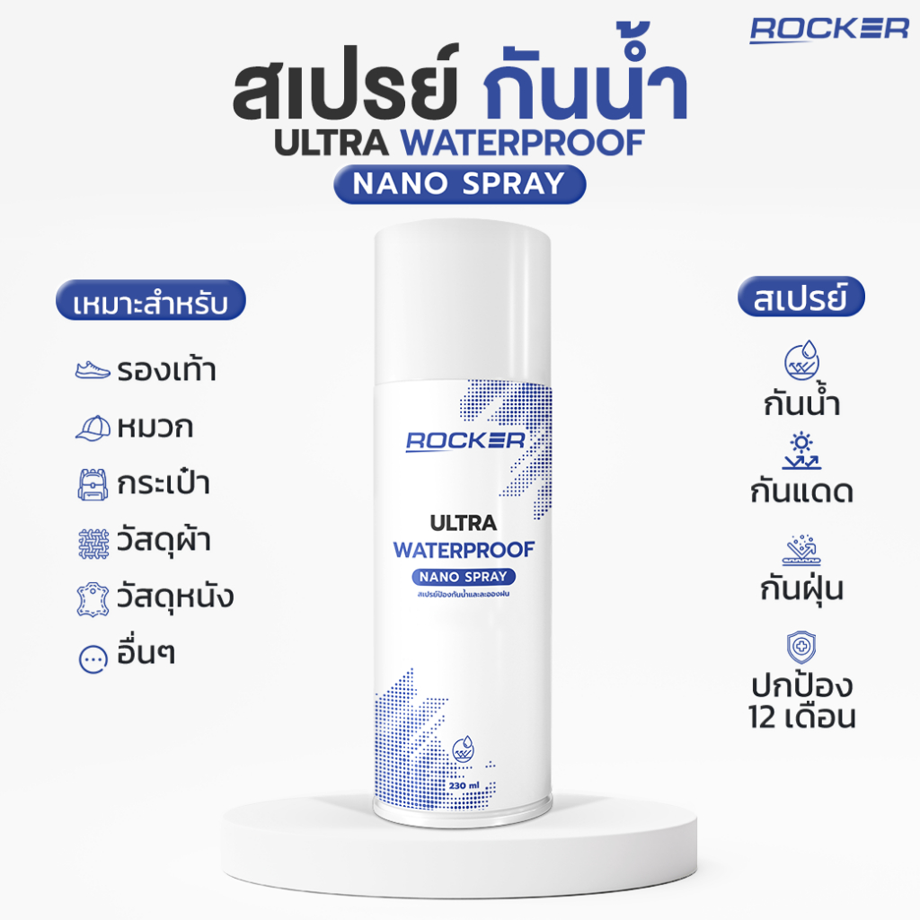 ROCKER WATERPROOF NANO สเปรย์กันน้ำ กันแดด กันฝุ่น รองเท้า กระเป๋า หมวก หนัง สเปรย์กันน้ำ สิ่งสกปรก