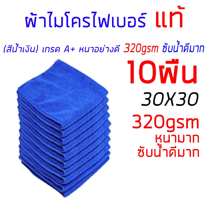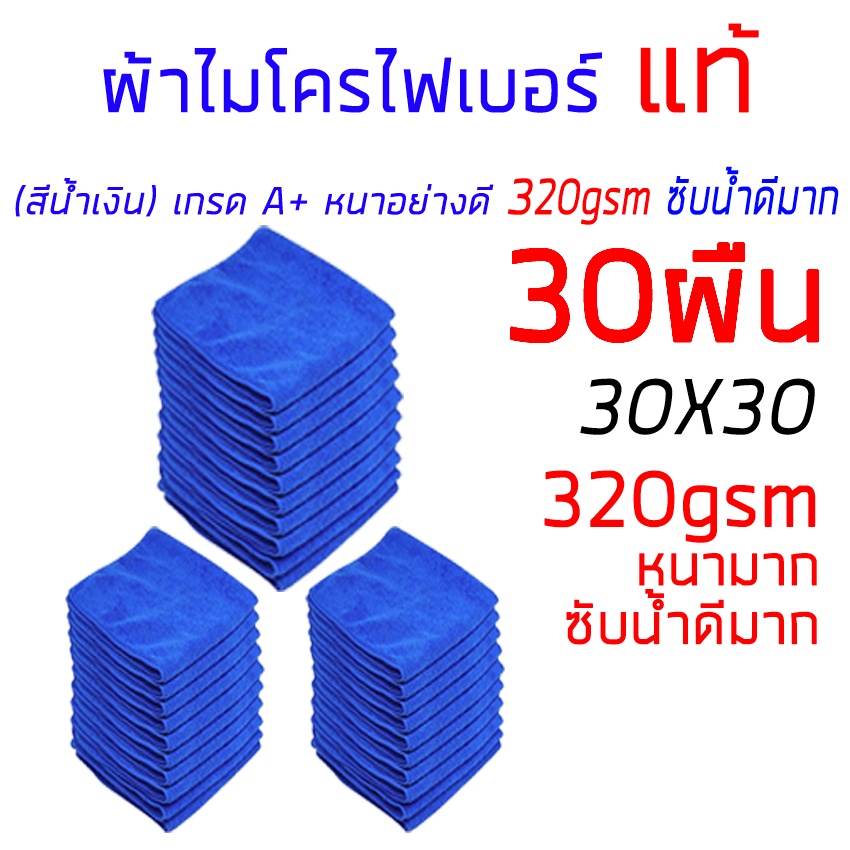 ผ้าไมโครไฟเบอร์แท้ ผ้าเช็ดรถ หนา 320gsm A+ 30x30cm สีน้ำเงิน หนาซับน้ำดี ทำความสะอาด ล้างรถ