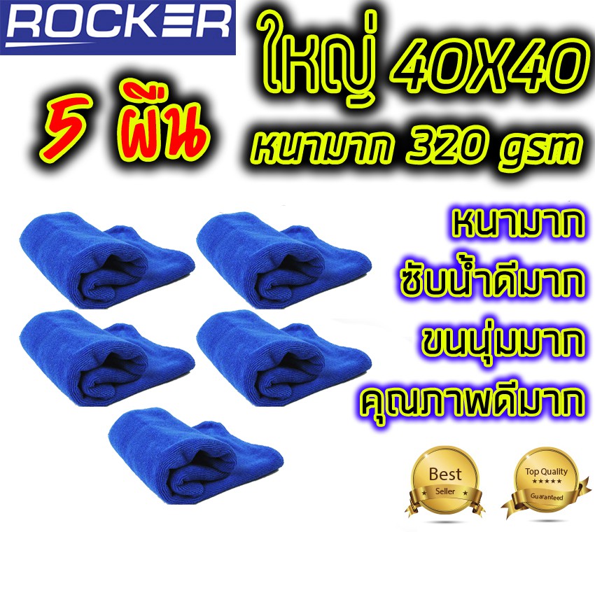 ผ้าไมโครไฟเบอร์ ผ้าเช็ดรถ หนามาก 320gsm ผืนใหญ่ 40x40 สีน้ำเงิน 5ผืน ซับน้ำดีมาก ทำความสะอาด ล้างรถ