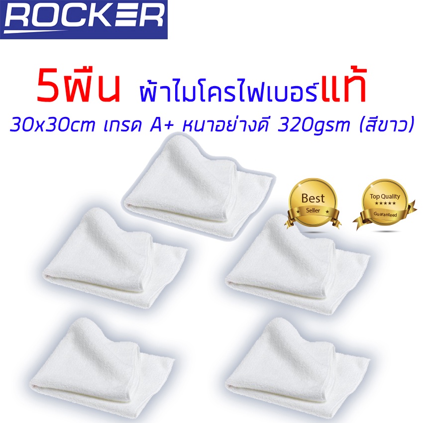 ผ้าไมโครไฟเบอร์แท้ หนา 320gsm 30x30cm 5ผืน สีขาว เกรด A+ ทำความสะอาด เช็ดรถ ล้างรถ ไม่มีขุย