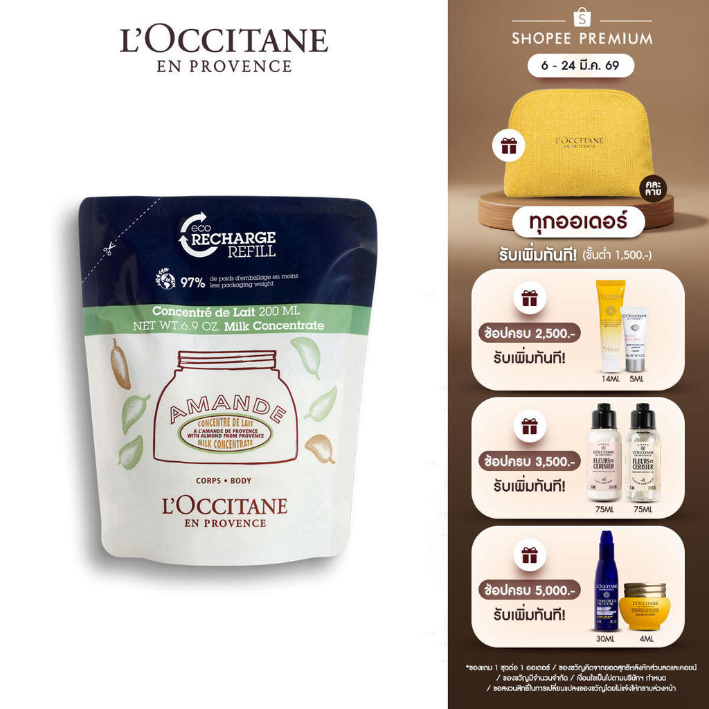 L'Occitane Almond Milk Concentrate Refill 200ml ครีมบำรุงผิวกาย อัลมอนด์ มิลค์ คอนเซนเทรท ข นาดรีฟิล (แบบเติม) 200 มล.