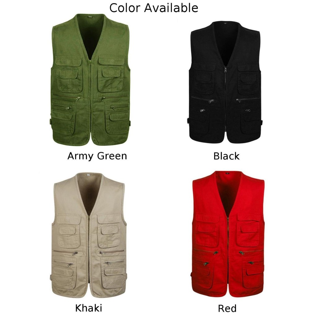 เสื้อกั๊กซาฟารี แบบมีกระเป๋าหลายช่อง สำหรับผู้ชาย ไซซ์ 3XL/5XL
