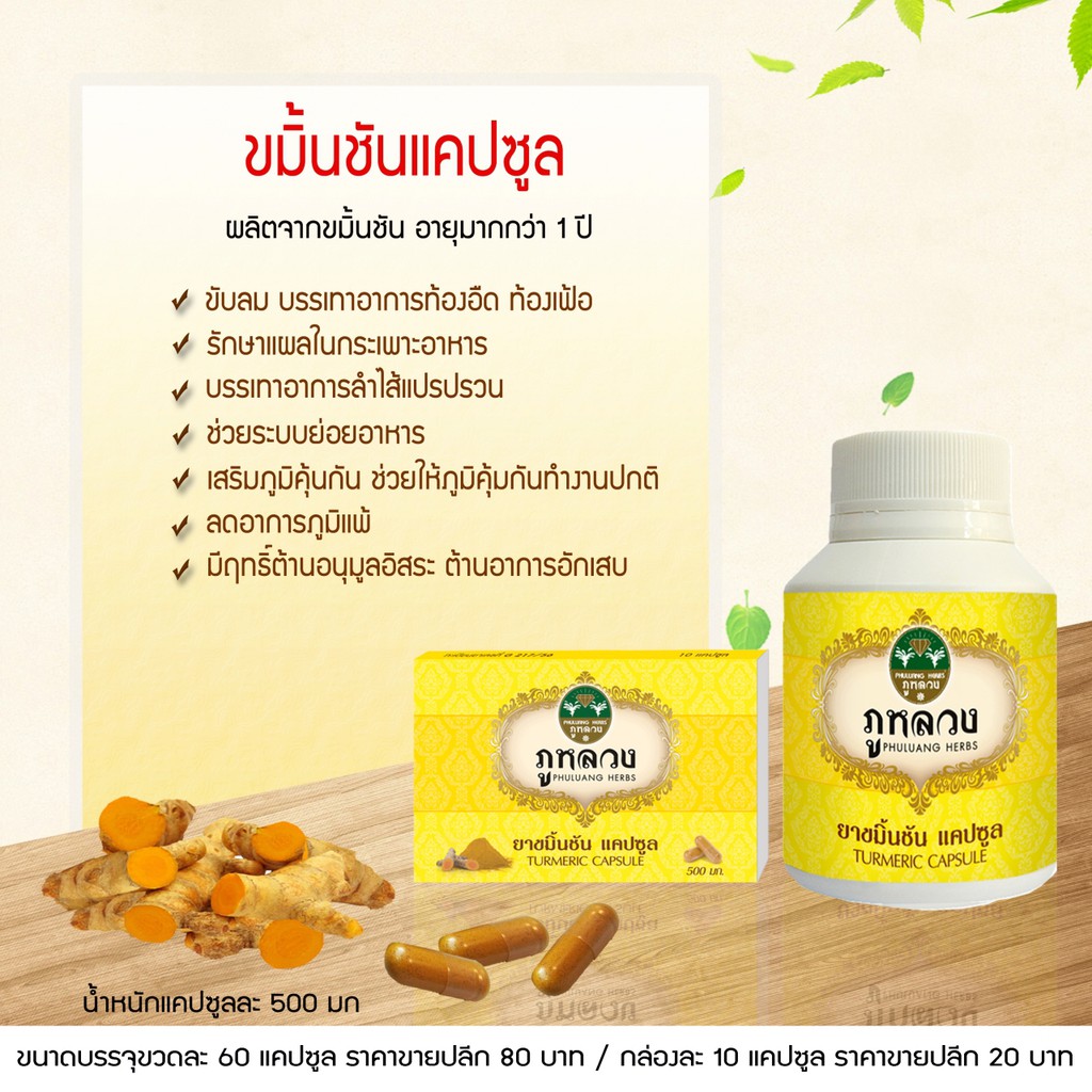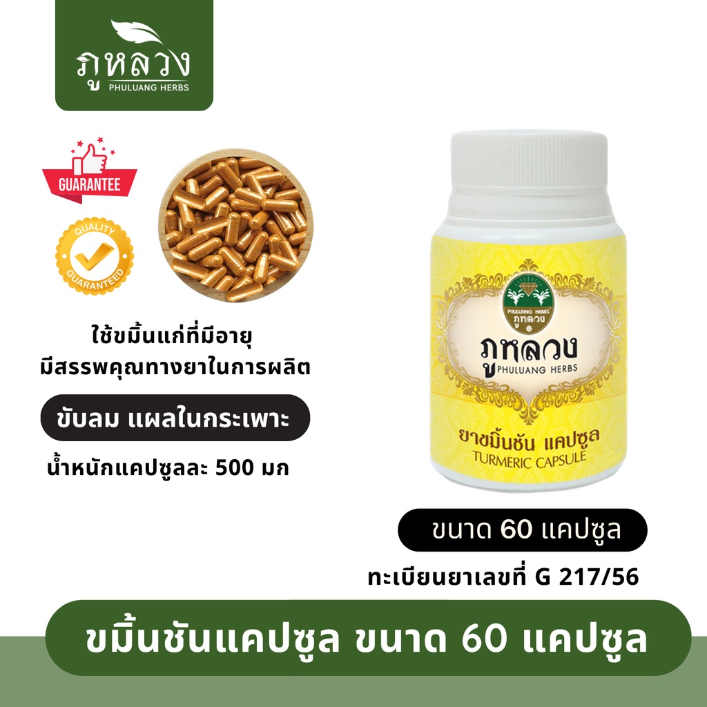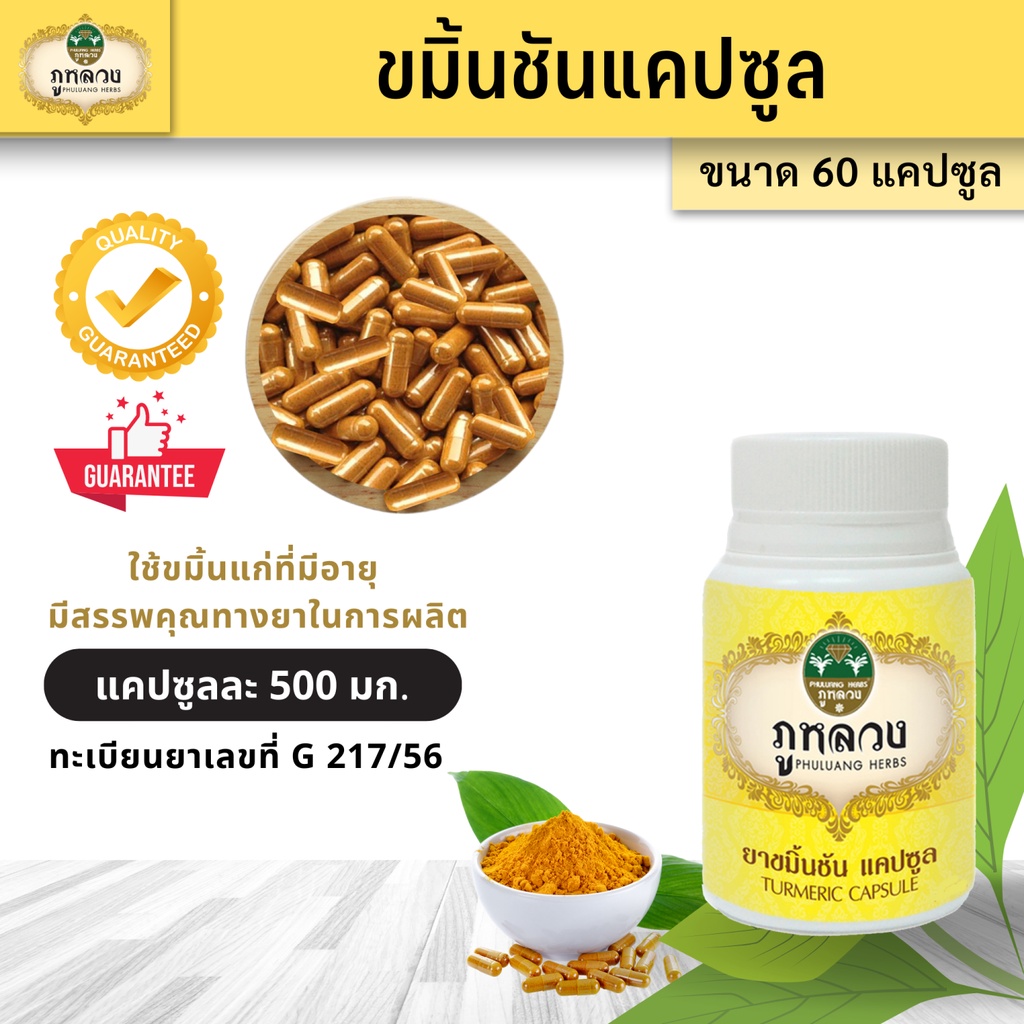 ขมิ้นชัน แคปซูล ตรา ภูหลวง (ผงยารวมแคปซูล 500 มก) 📣 😍 โค้ดส่วนลด🔖 ถ้ามีจะโพสที่หน้าร้าน 😍 ขนาด 60 แคปซูล