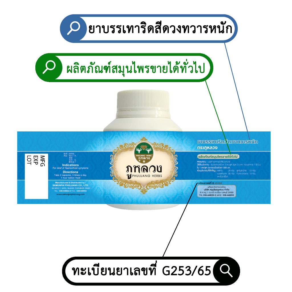 ริดสีดวง ริดสีดวงทวาร ตรา ภูหลวง สำหรับริดสีดวงทวารทุกระยะไม่ต้องผ่าตัด ขวด 100 แคปซูล (พร้อมส่ง ล็อตใหม่ ไม่ค้างสต็อก)